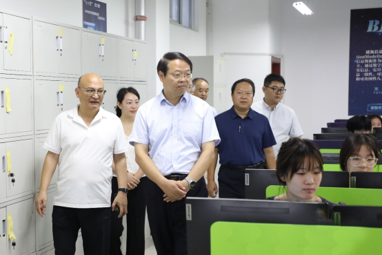 在郑州校区,薄新党一行重点查看了教学楼、实训楼师生到课情况,教学设施准备及课堂运行情况,详细了解了各二级学院本学期教育教学工作安排。他指出,要强化教学工作中心地位,加强教风和学风建设,要因地制宜、因材施教,以教育数字化转型为突破口,更新教育教学理念、变革教育教学模式,提高课堂教学和实训教学质量,全面提升人才培养质量,推动学校教育事业更上一层楼。