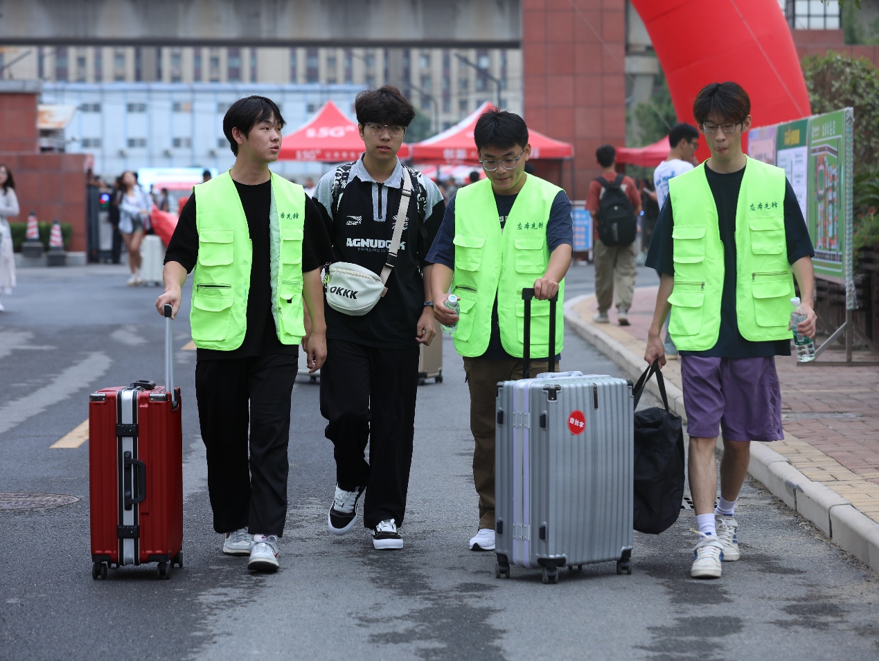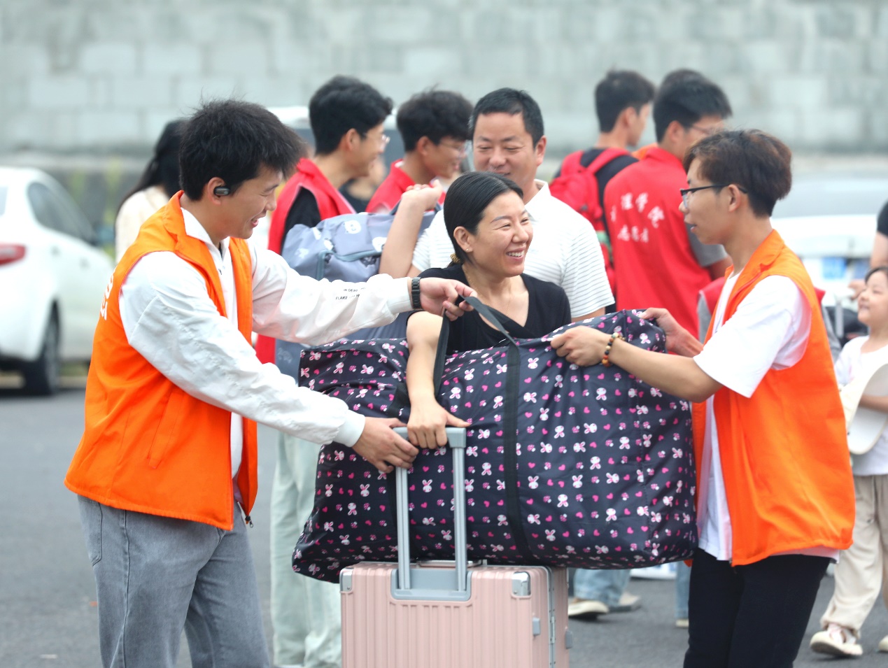 从操场到宿舍,志愿者们忙碌的身影成为了一道亮丽的风景线。他们绽放着热情的笑容,为新生引导路线、搬运行李、耐心解答各种问题,让新生们在踏入校园的这一刻就感受到学校的暖心服务。