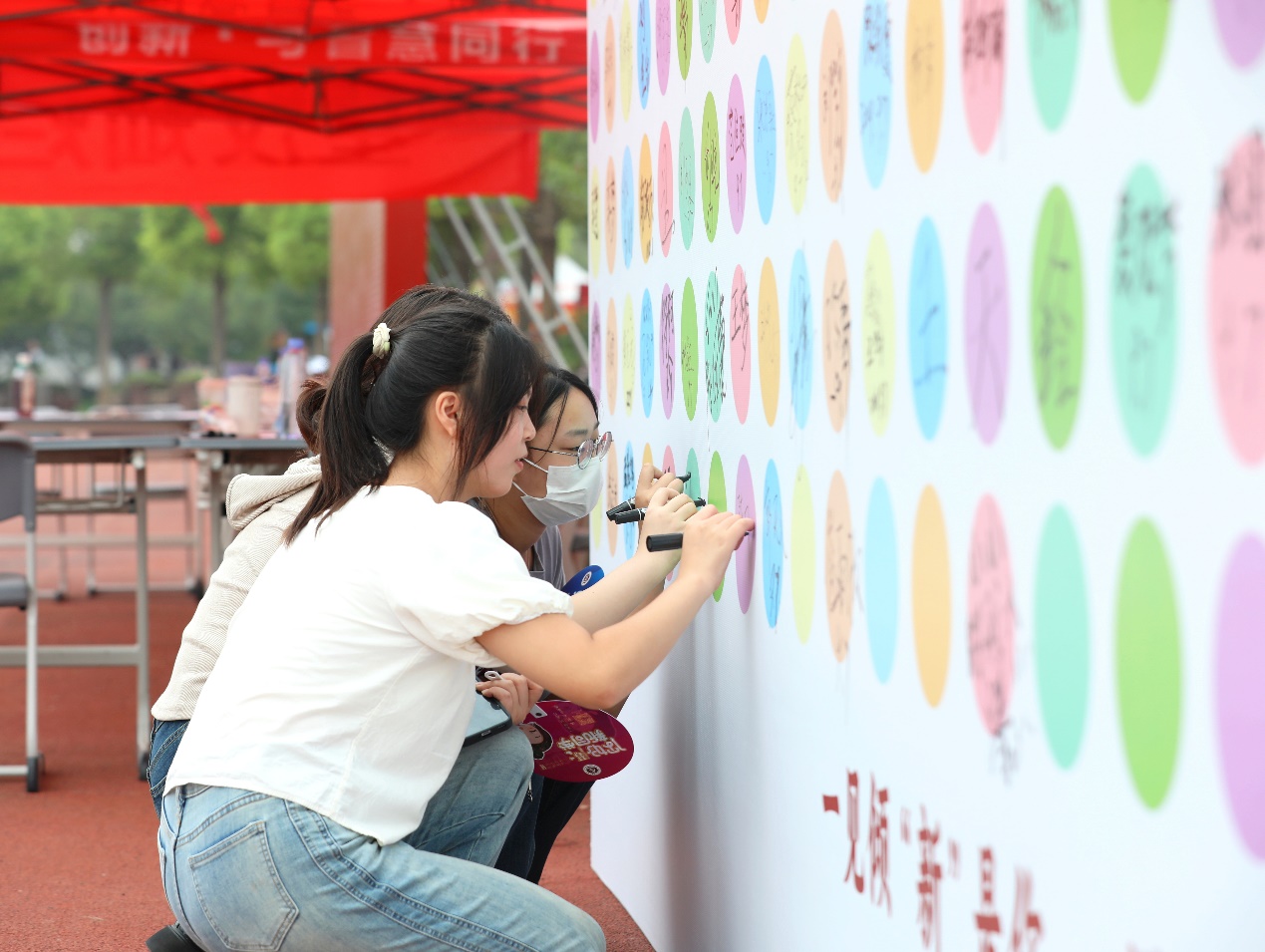 校园里,彩旗飘飘。“热烈欢迎新同学”、“梦想从这里起航”等迎新标语格外醒目,处处洋溢着热烈、欢快的气氛。各学院(部)的迎新方式独具匠心:打卡展板、签名墙、寄语盲盒、时光邮箱等各种丰富多彩的创意巧思与校区特色、校园环境相呼应,代表着对新同学的欢迎和期待。让新生们在轻松愉快的氛围中感受到学校以文化人、以文育心的内涵建设。