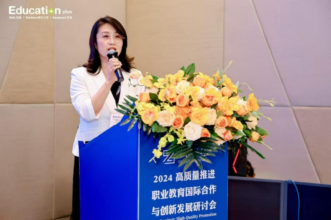 副校长滕文锐在2024高质量推进职业教育国际合作与创新发展研讨会上致辞。她分享了我校在国际交流与合作及国际化办学方面的做法和取得的成绩。滕文锐表示,我校将持续创新职业教育国际交流与合作机制,积极服务国家“一带一路”发展战略,对标高水平国际化学校建设指标体系,强化学校国际化办学顶层设计,期待与更多“一带一路”国家建立合作关系,开展职业教育的合作交流,培养高素质技术技能人才,为地方经济发展提供人才支撑。