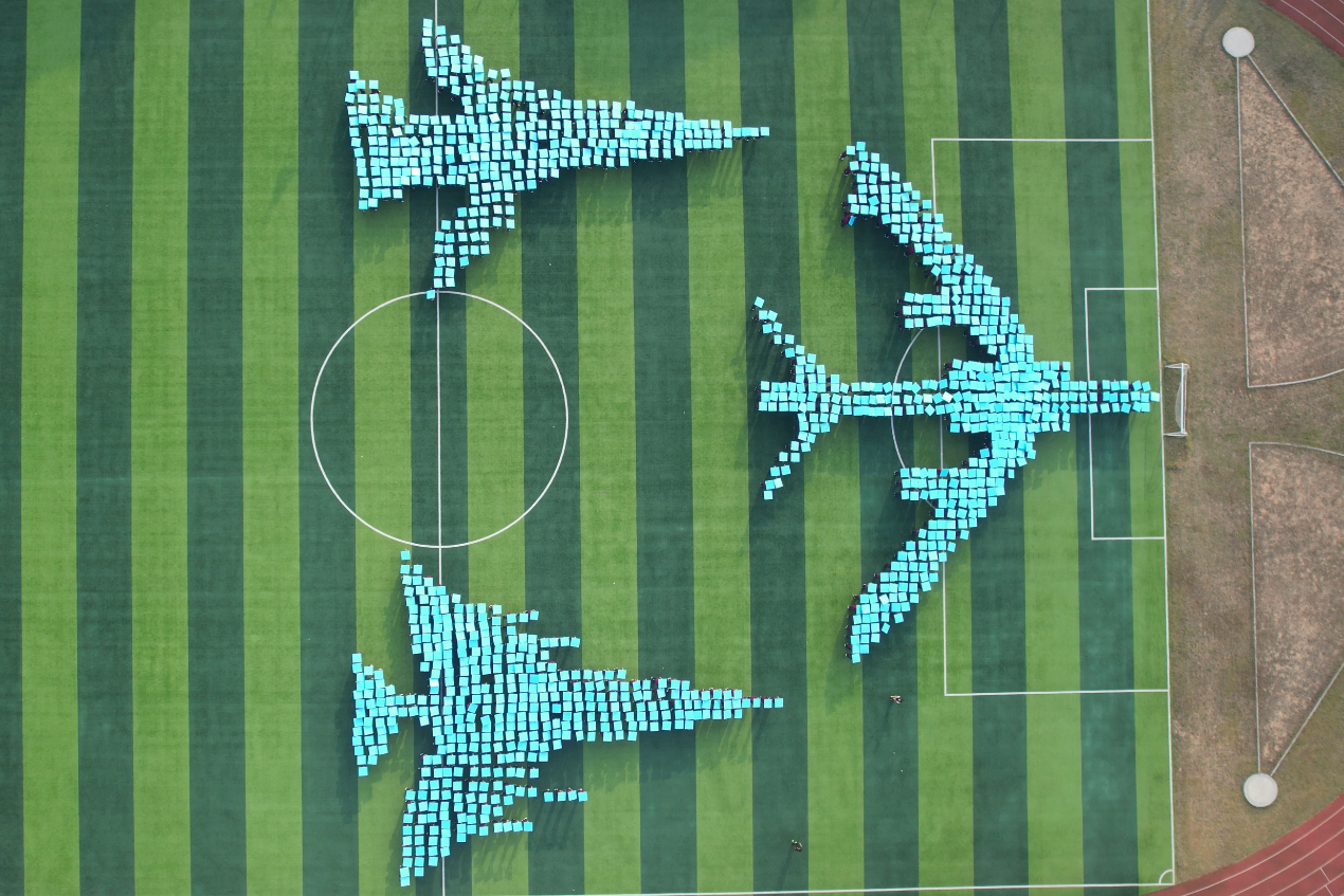 风卷红旗飘扬,会场国歌嘹亮,大会在庄严的升国旗、奏唱国歌中拉开帷幕。8858名新生目光如炬,身姿挺拔,心中涌动着对祖国的热爱和自豪。