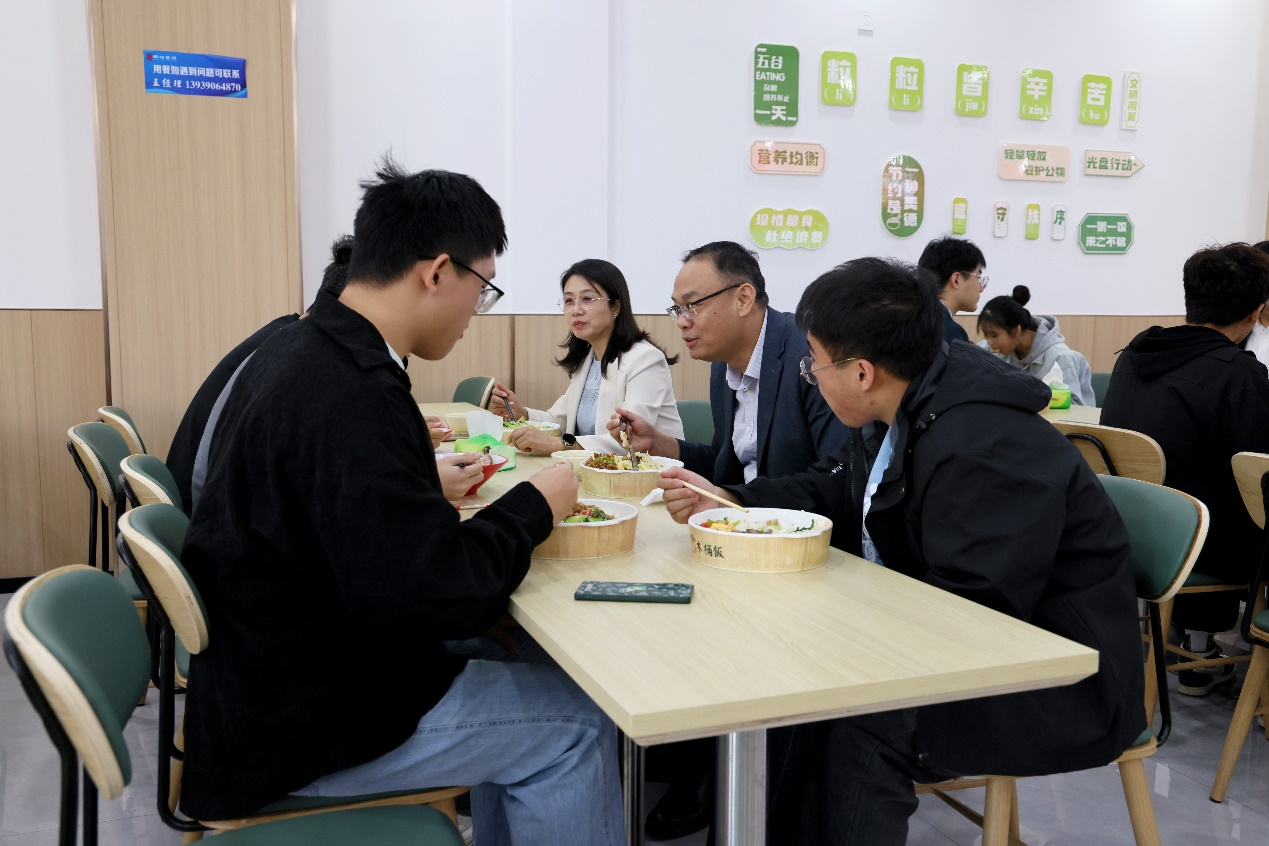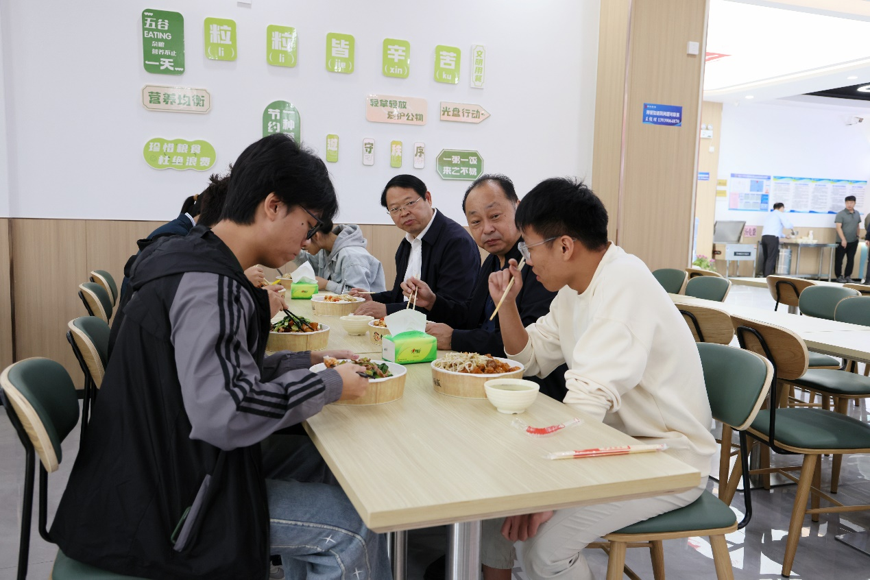闫俊山一行在学生食堂和留校学生共同就餐,在轻松愉快的氛围中与同学们亲切交谈,对学生成长成才表示了深切关怀,安排部署了学生学习生活保障工作。希望同学们不负青春韶华,努力学习专业知识,积极参加实践活动,切实提升综合素质,奋发图强,不断进步,为学校的发展增光添彩,同时也祝愿他们度过一个充实而愉快的国庆假期。
