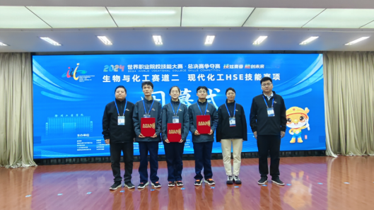10月28日至10月31日,2024年世界职业院校技能大赛总决赛争夺赛现代化工HSE技能赛项在徐州工业职业技术学院举行。来自全国29个省、自治区、直辖市和兵团的54支参赛队伍,193位参赛选手展开激烈角逐,共展职教风采。经过激烈争夺,我校应用化工技术专业学生王丹丹、杨志坚、李鑫源三人组成的代表队,以小组第二名的优异成绩,斩获银奖。