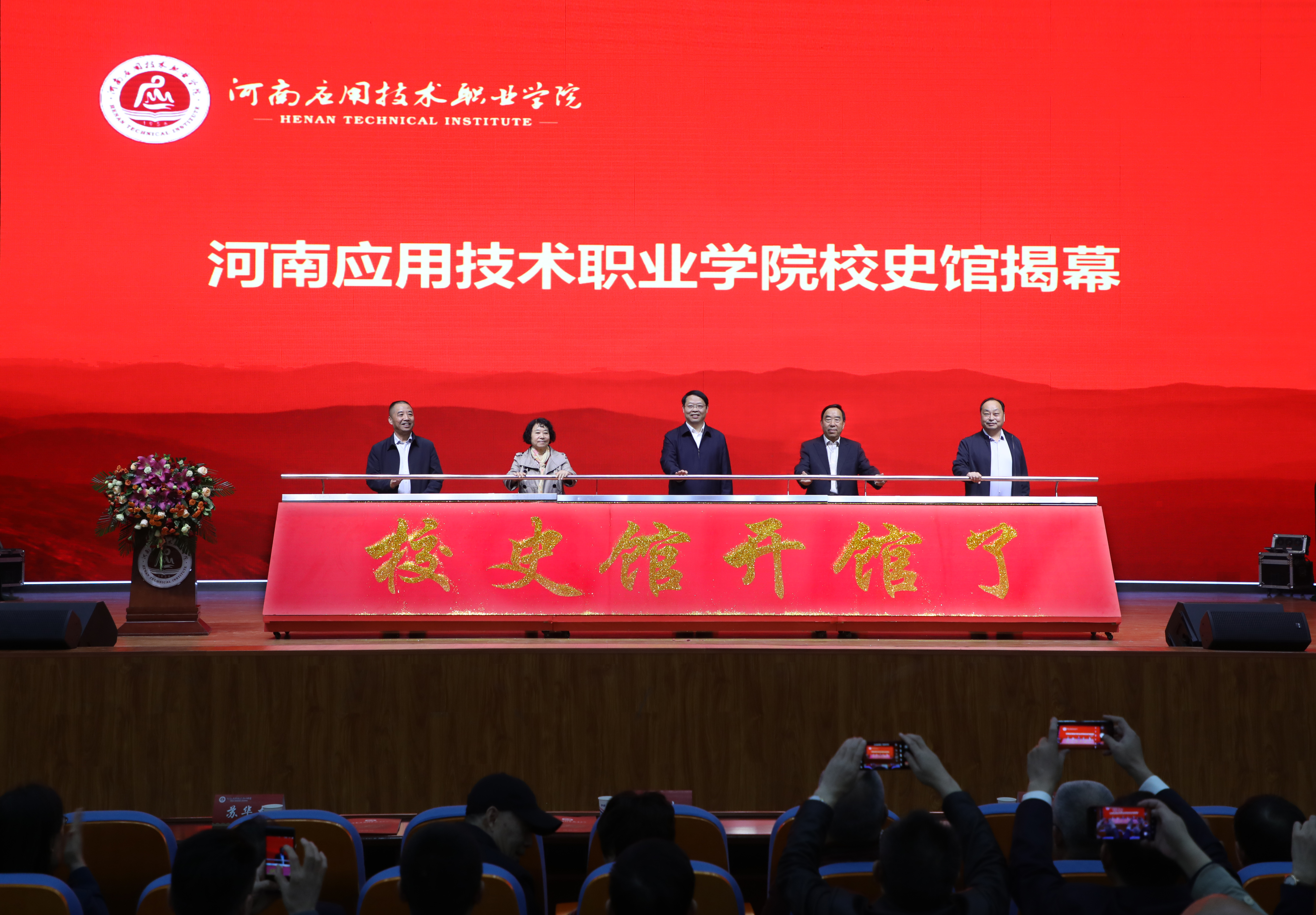 在现场师生们热烈的掌声中,学校党委书记闫俊山,河南省化学工业学校原校长、河南化工职业学院原调研员(正院级)苏华龙,河南省医药学校原校长左淑芬,学校校长薄新党,学校杰出校友、河南能源集团有限公司党委副书记刘同胜集体登上启动台,共同为校史馆揭牌。随着鎏沙金粉的飘落,印有“校史馆开馆了”的字样渐渐呈现出来,标志着学校又构筑了一处精神文明“新高地”,增添了一处历史文化“新坐标”。