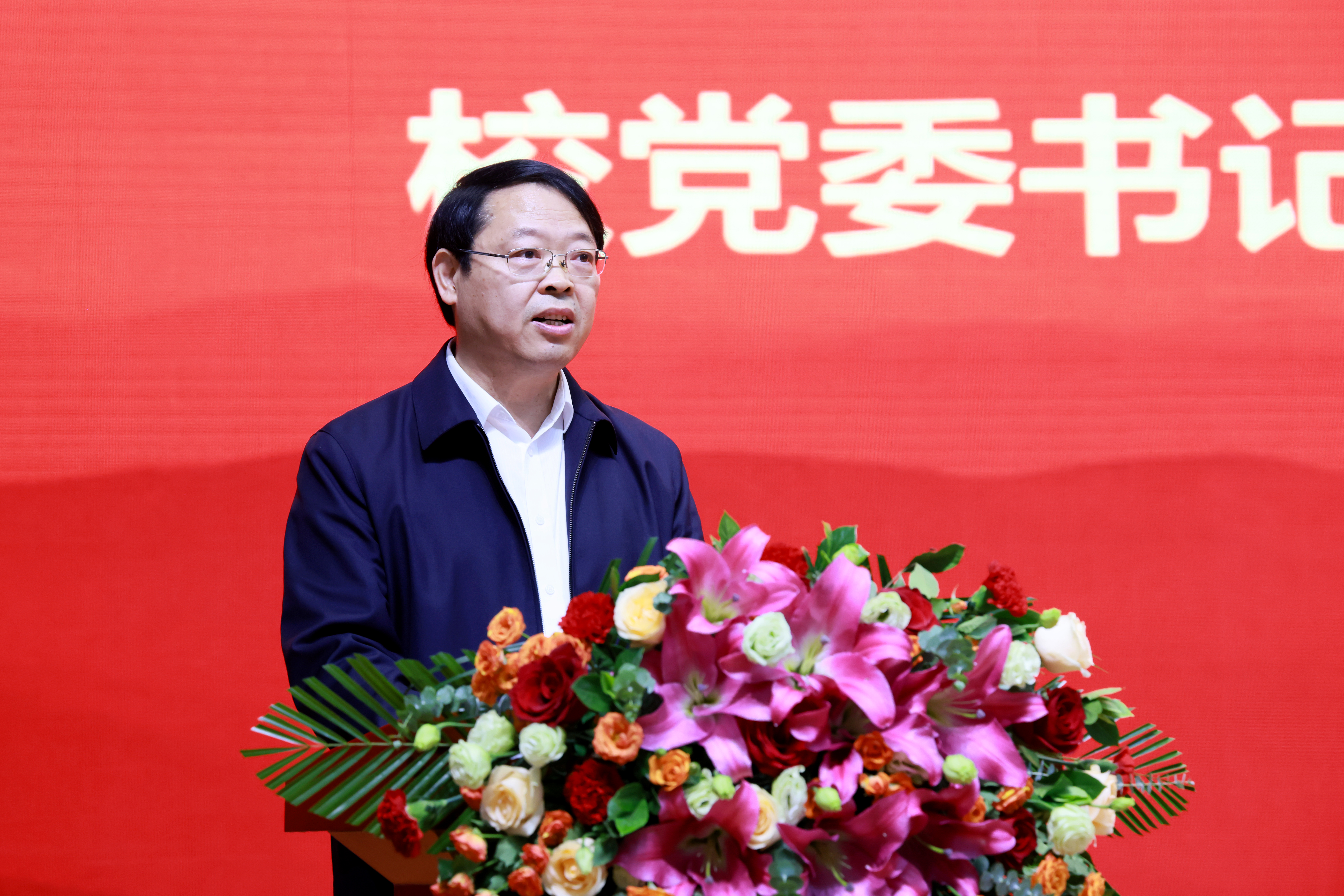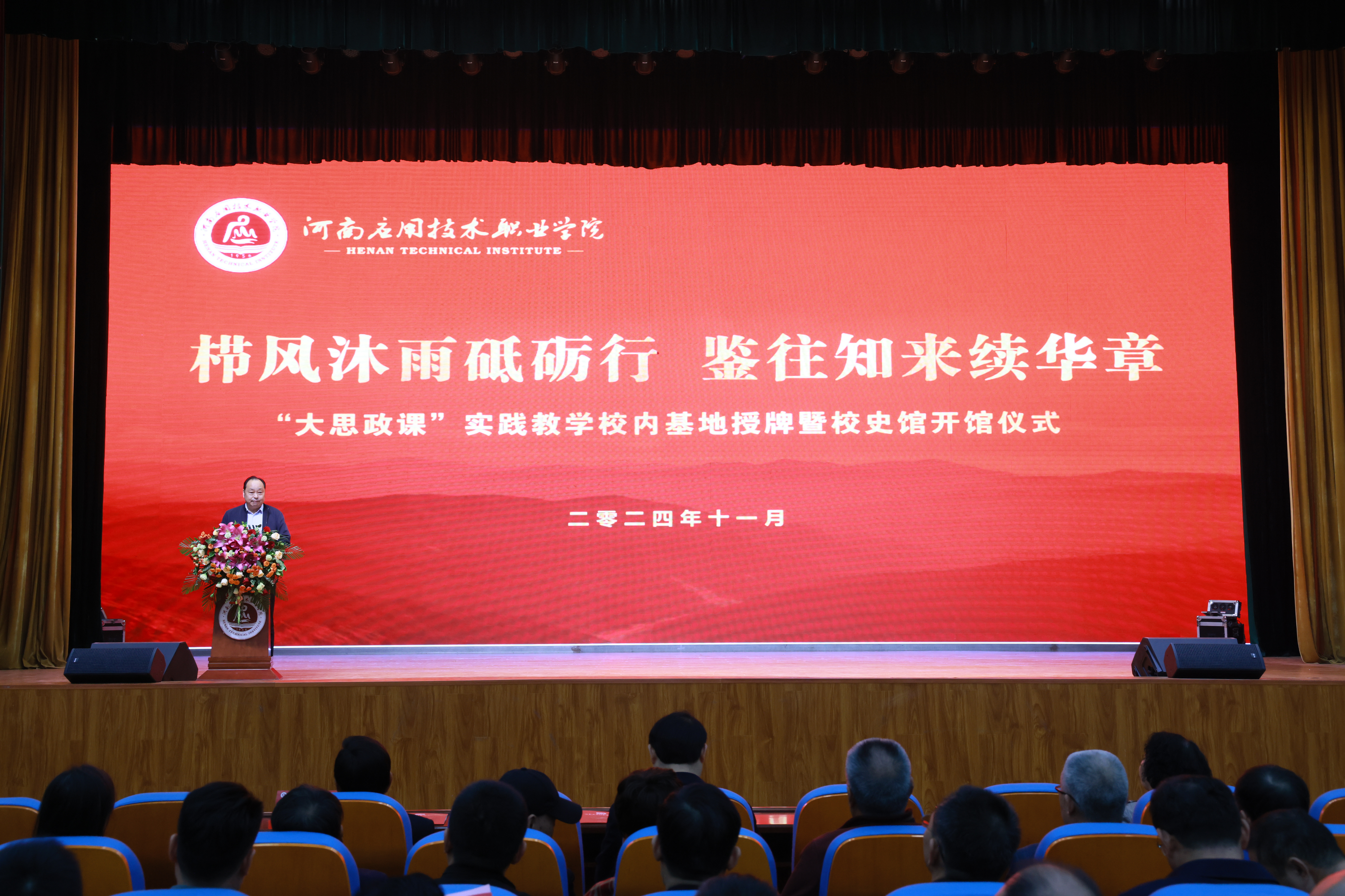 赓续校史荣光,续写壮丽篇章。11月11日上午,我校在郑州校区学生活动中心举行“大思政课”实践教学校内基地授牌暨校史馆开馆仪式。学校领导班子全体成员、离退休人员代表、优秀校友、校史资料捐赠者代表、全体中层干部及学生代表近300人共同见证这一激动人心的时刻。仪式由校长薄新党主持。