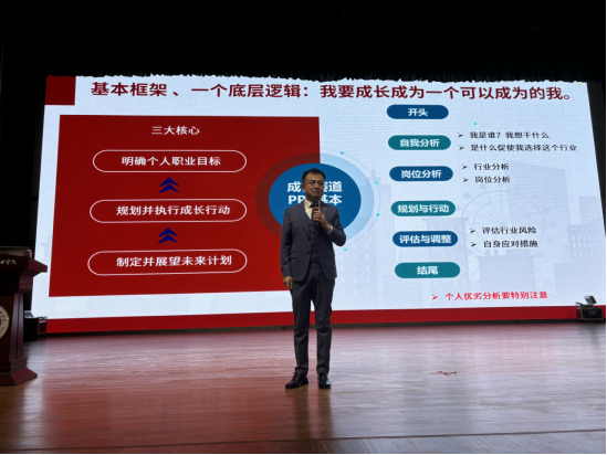 启动仪式上,国家级职业规划师王林教授做首场专题培训。王林从全国大学生职业规划大赛的背景入手,逐步引入往届大赛国赛金奖项目案例,针对参赛的每个环节、每个部分材料准备等内容都进行了深入浅出的分析,语言精炼准确、通俗易懂,让参会师生清晰地感受到大学生职业规划大赛的重要意义和目标、要求。