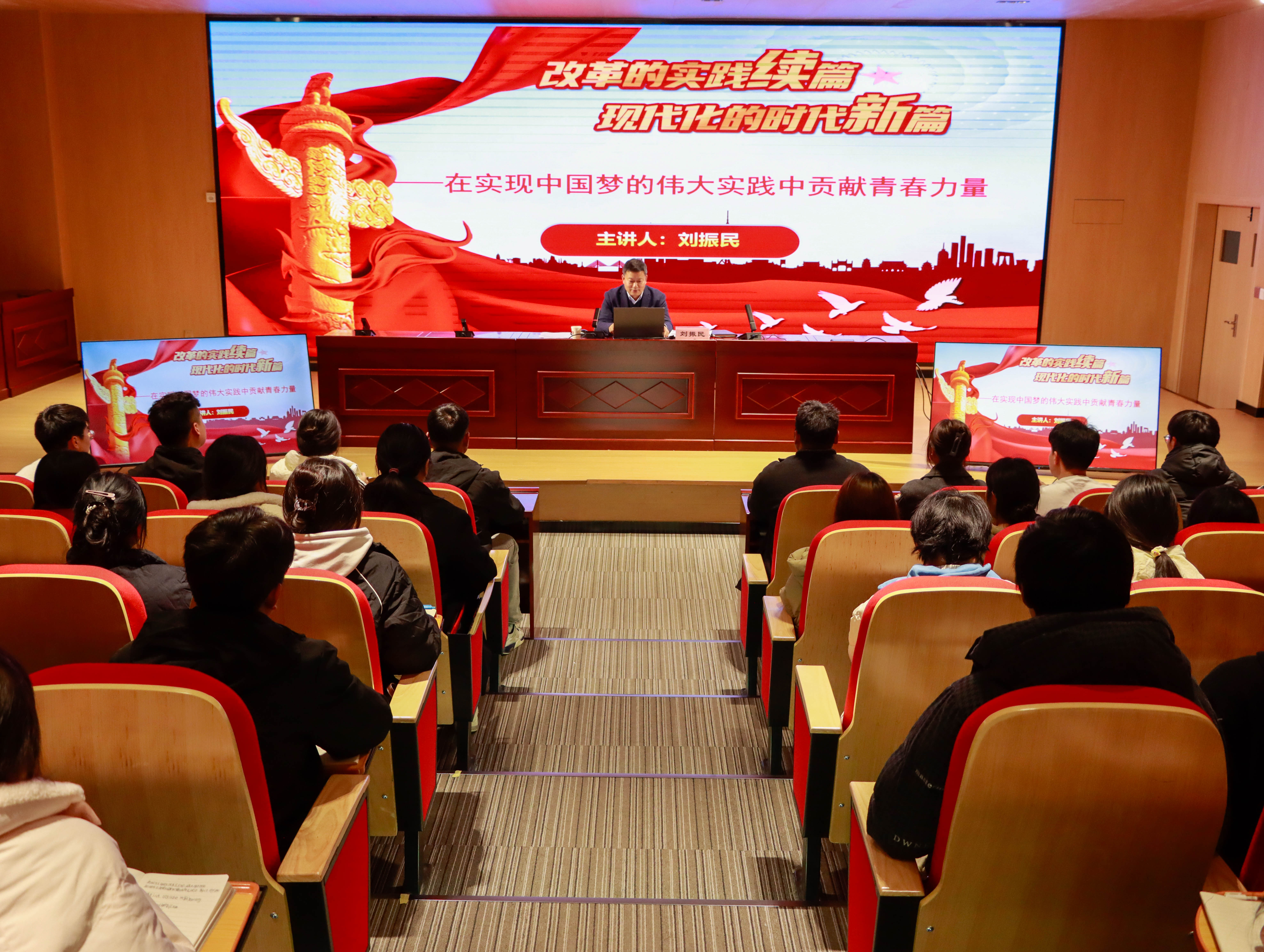 刘振民详细解读了全面深化改革的时代意义。他围绕全面深化改革波澜壮阔的历史;如何遵循改革规律,保持战略定律;当代青年如何在实现中国梦的伟大实践中贡献青春力量等三方面,通过丰富的案例和生动的语言向同学们全面展示了中国改革开放的壮丽画卷。刘振民勉励全体青年学子要志存高远,以“矢志奋进”的坚定信念争做“时代领航”的卓越青年;要胸怀大局,以“追梦前行”的不懈执着勇当“时代先锋”的杰出青年;要敢担重任,以“锐意进取”的实干精神铸就“勇于开拓”的奋进青年;要敢为人先,以“勇攀高峰”的无畏勇气成为“担当作为”的模范青年。