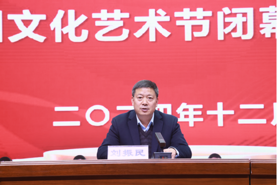 刘振民作总结讲话。他表示,一直以来,学校高度重视校园文化建设,深入贯彻“三全育人”理念,坚持五育并举,持续推动我校校园文化艺术活动健康发展,让广大同学学会鉴别美、创造美、发现美,全面提升艺术素养和综合能力。为进一步打造校园文化品牌、拓展校园文化内涵、提升校园文化品位,刘振民提出四点希望:一是要以文化人,以情润心,用真挚人文关怀滋养学生内心世界;二是要以艺育人,以技启智,用精湛技艺开启学生智慧之门;三是要以风感人,以礼塑行,用浓郁校园氛围塑造良好行为品德;四是要以践励人,以行铸魂,用社会责任锤炼学生坚毅品格。