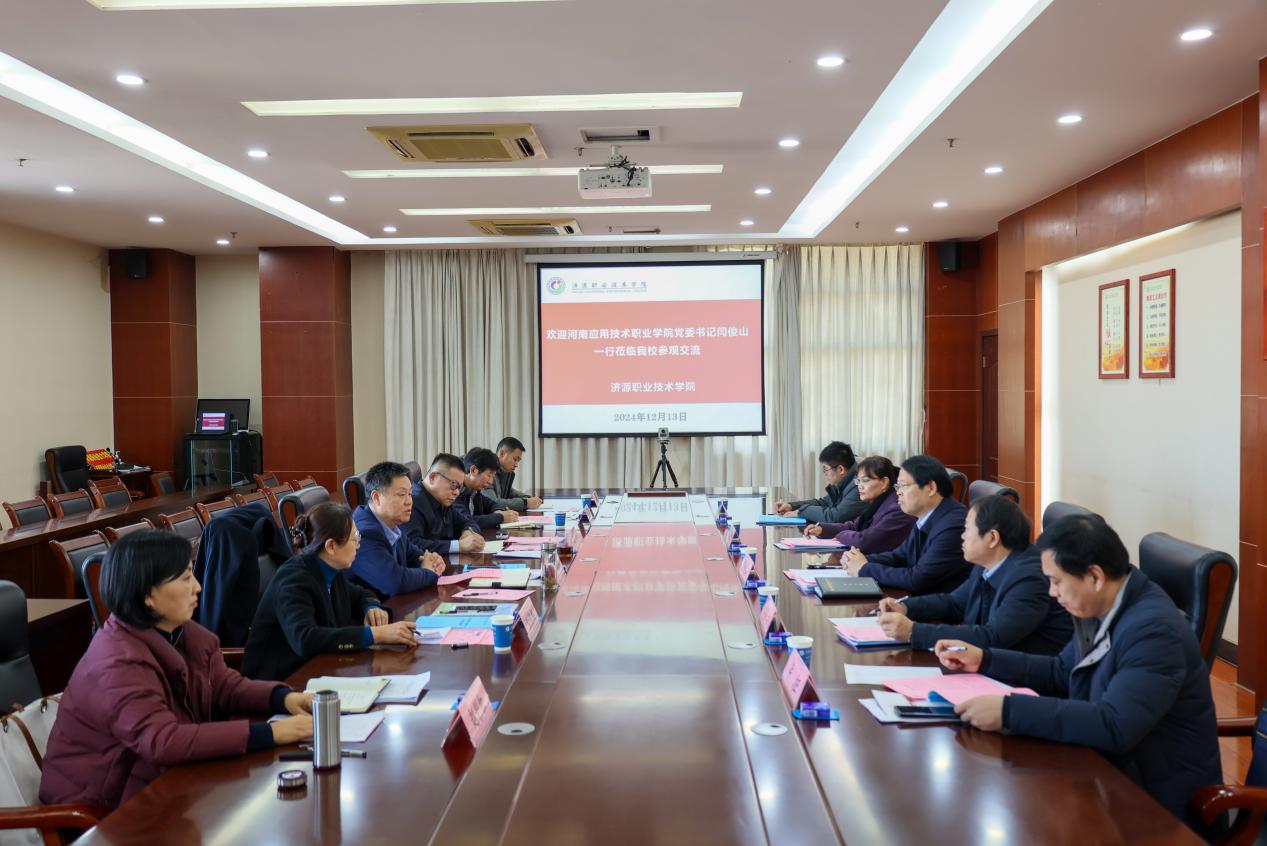 王四战对闫俊山一行的到来表示热烈欢迎,他介绍了学校近年来的发展情况及取得的最新成果,并就提升党建质量、深化校企合作等方面进行了交流。闫俊山对济源职业学院的热情接待表示感谢,就我校多校区办学介绍了经验和做法,同时也期待今后在专业建设、教育教学、产教融合等方面有更深入的交流与合作。座谈会上王磊还就学校招生就业、后勤管理等工作与常新中进行了交流探讨。济源职业技术学院汽车工程学院院长赵彩红介绍了该学院与知名企业深度合作、提升学生专业技能和就业竞争力等方面典型经验与做法。