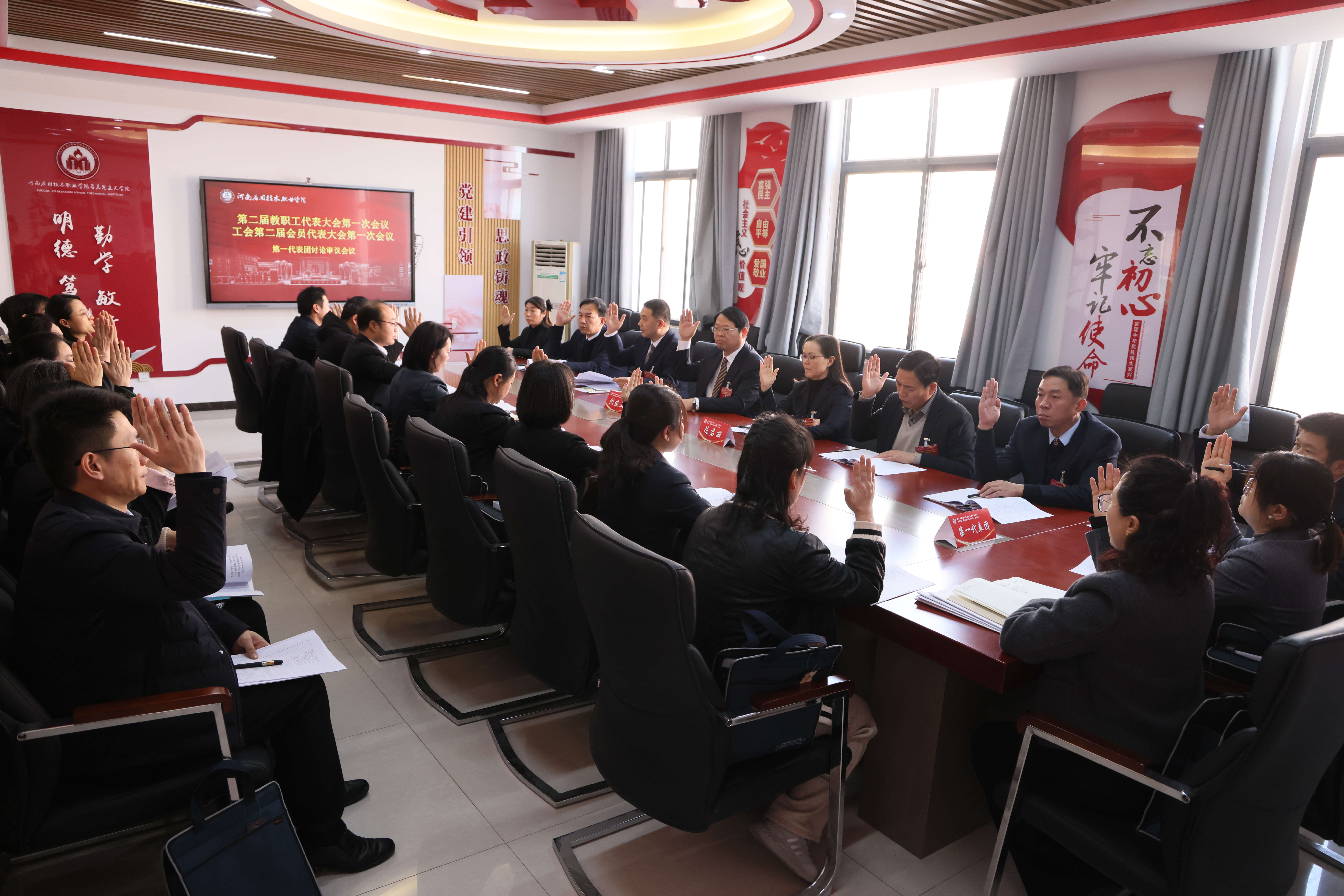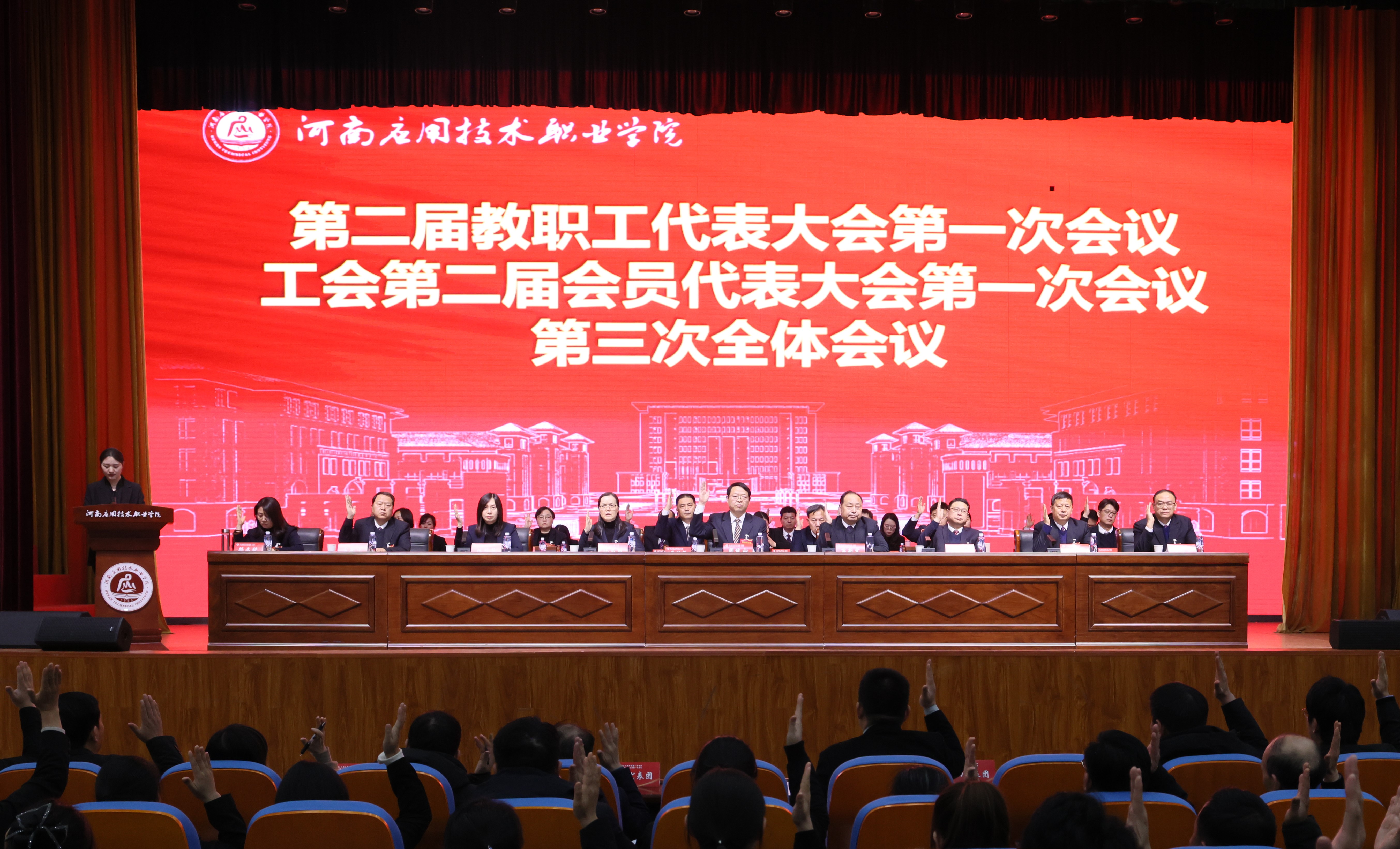 大会选举产生了河南应用技术职业学院工会第二届委员会、工会经费审查委员会和女职工委员会;表决通过了《学校工作报告决议》《学校工会工作报告决议》《学校2024年度财务预算执行情况和2025年度财务预算报告决议》《学校法治工作报告决议》《学校工会经费使用情况报告决议》。