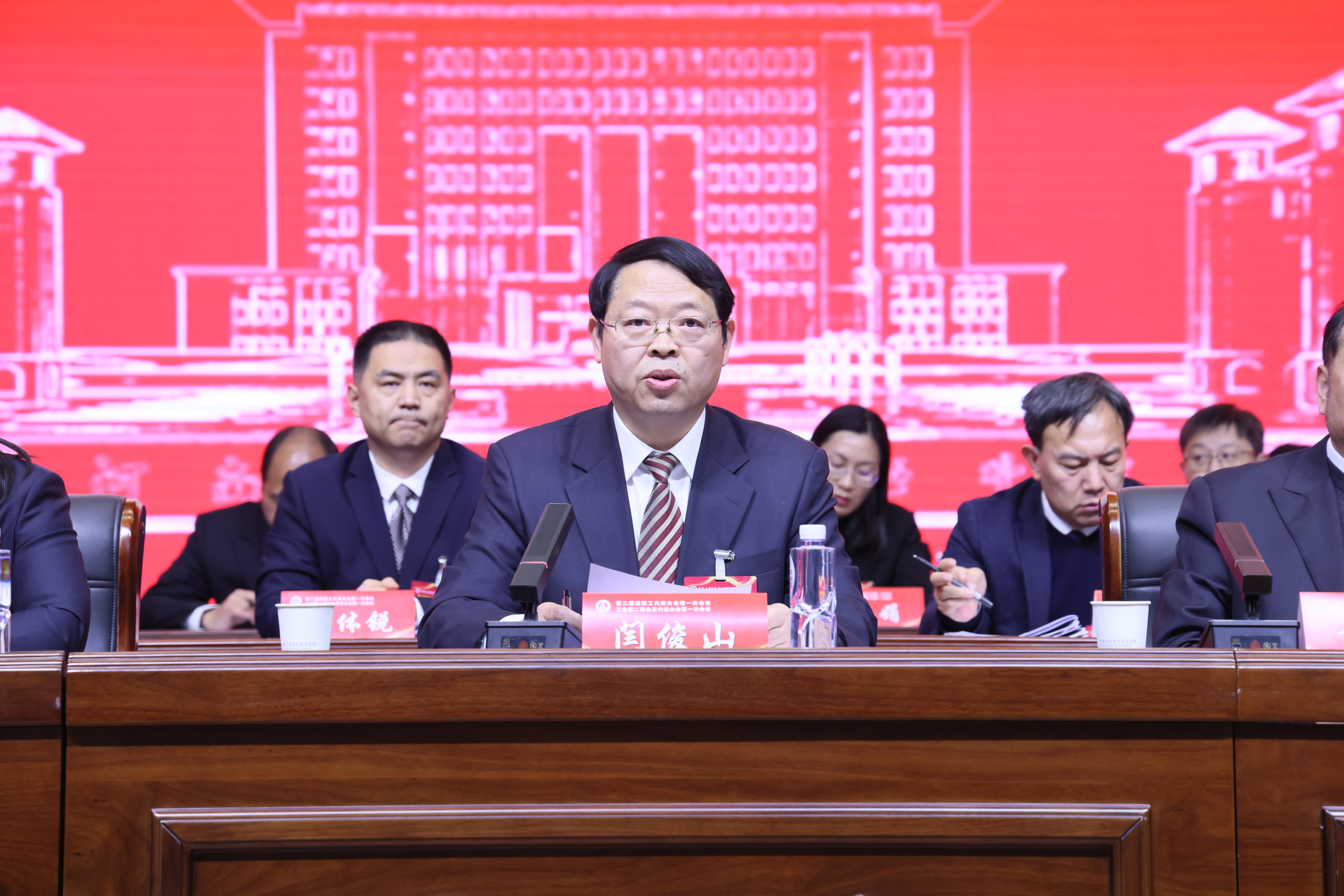闫俊山在总结讲话中表示,本次大会是一次坚定信心、团结务实、砥砺奋进的大会,对于学校进一步统一思想、凝聚力量,加快建设特色鲜明的高水平职业院校具有十分重要的意义。他指出,当前,职业教育正处于前所未有的发展机遇期,同时也面临着诸多的严峻挑战。我们必须紧紧抓住国家大力发展职业教育的黄金契机,以时不我待、只争朝夕的紧迫感和使命感,乘风破浪,奋勇前行。2025年,是“十四五”收官之年和“十五五”规划之年,也是我校创建“新双高”、实现跨越式发展的关键之年。做好今年的工作,对于学校未来五年,乃至更长时间的高质量发展至关重要。他强调,我们要肩负重任,勠力同心,团结拼搏,奋发有为。他强调几点意见:一是突出党建引领,凝聚跨越发展合力;二是注重培根铸魂,落实立德树人根本任务;三是聚焦“新双高”建设,提升学校核心竞争力;四是狠抓内涵建设,提高人才培养质量;五是坚持引育结合,打造高水平教师队伍;六是深化产教融合,构建校企命运共同体;七是厚植校园文化,涵养良好育人氛围;八是恪守师生至上,优化服务保障效能;九是筑牢安全底线,确保校园和谐稳定。他号召全校教职员工要更加紧密地团结起来,以习近平新时代中国特色社会主义思想为指导,锚定“新双高”建设目标,坚定信心、踔厉奋发、勇毅前行,以一往无前的勇气、革故鼎新的锐气、不懈奋斗的朝气,奋力谱写学校跨越式发展崭新篇章。