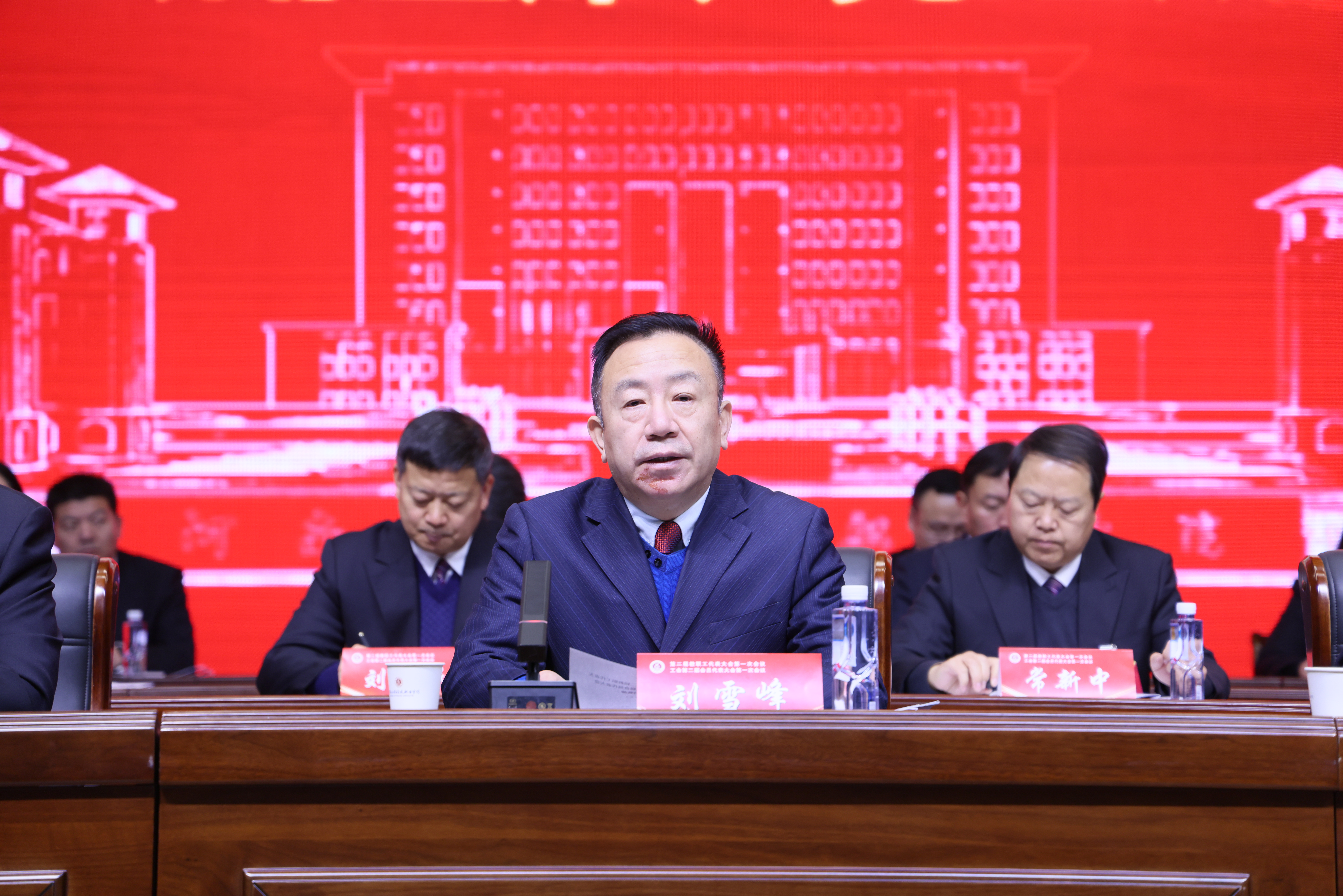 大会在雄壮激昂的国歌声中拉开帷幕。刘雪峰代表河南省总工会向大会致贺词,向大会的召开致以热烈祝贺,向出席大会的全体代表和全校教职工致以诚挚问候和崇高敬意,并预祝大会取得圆满成功。
