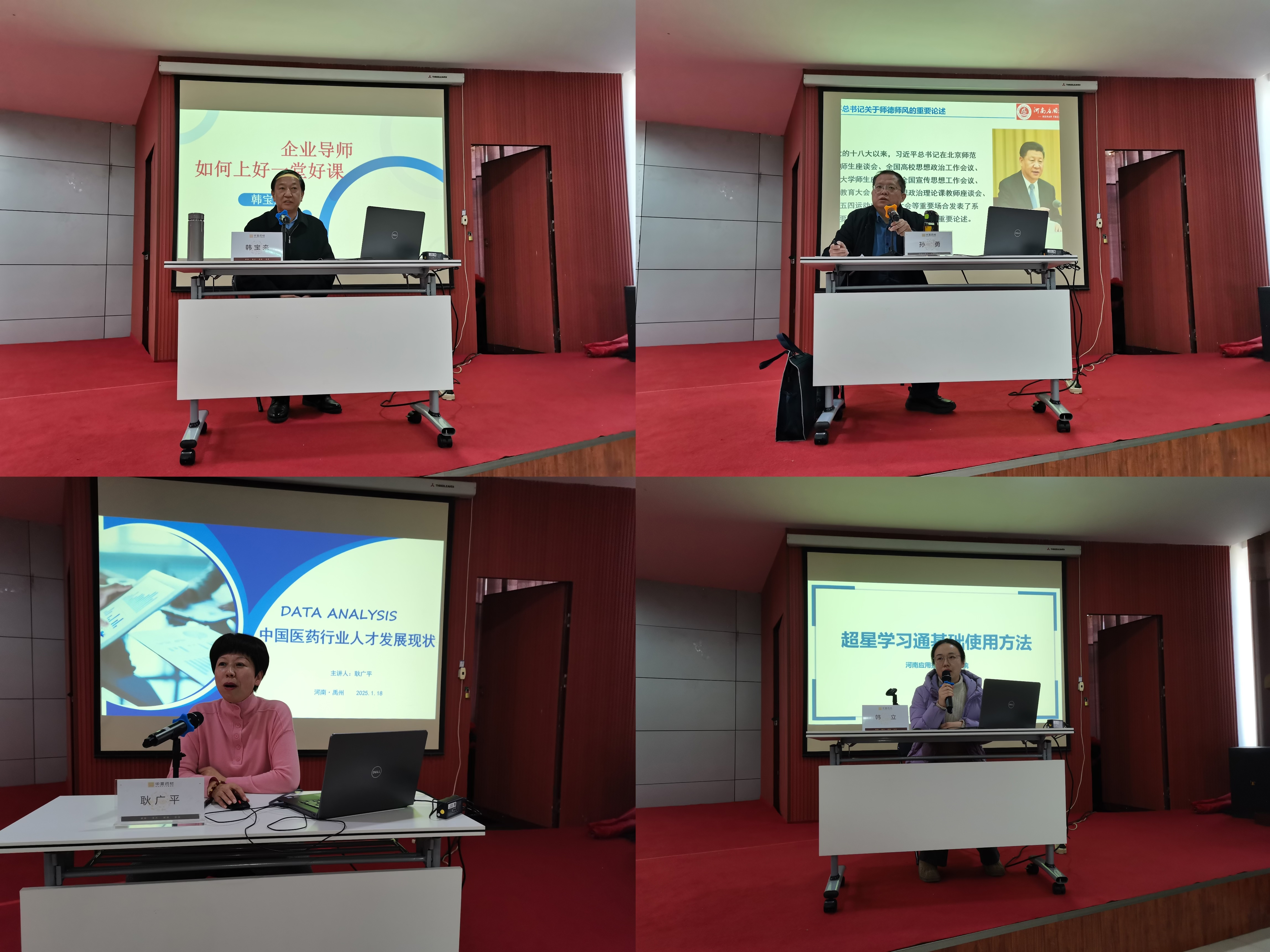 培训会上,来自校内外的各位专家精准把握市场脉搏,突破传统教学思维局限,围绕师德师风建设、打造优质课堂的技巧、当下医药行业人才发展格局以及实用教学工具的操作方法等方面,将复杂的教育理念与行业知识化作通俗易懂的内容,为企业导师们带来了一场知识盛宴。