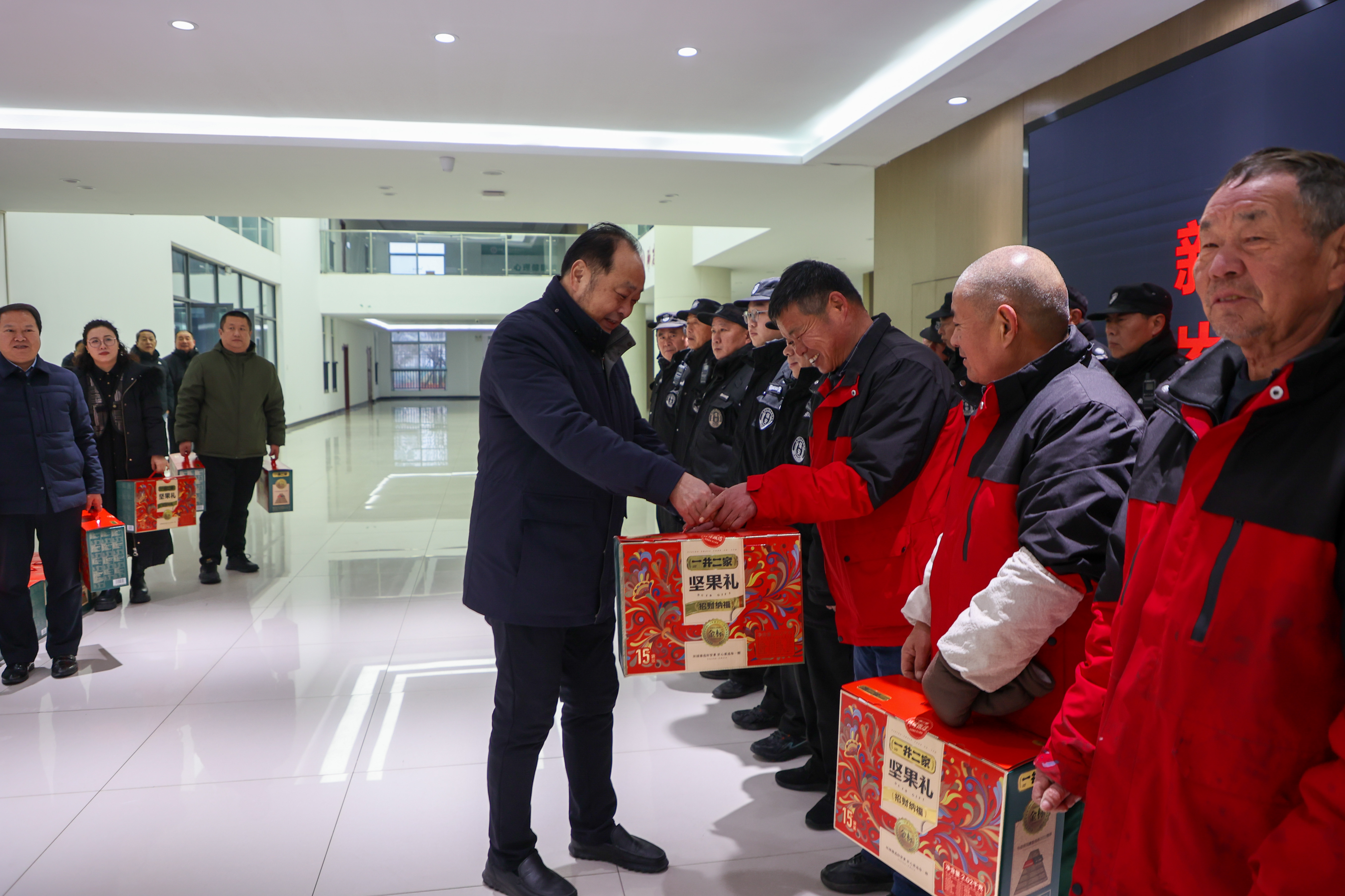1月29日上午,新年第一天,闫俊山、薄新党一行到郑州校区开展慰问活动,向在校坚守岗位的值班工作人员、一线值守人员送上新春问候和诚挚祝福,并发放了新春慰问品。闫俊山、薄新党对过去一年来大家在各自岗位上的辛勤工作给予充分肯定和高度赞扬,对他们在春节假期中,舍小家、顾大家,坚守工作岗位,为维护校园安全做出的无私奉献表示衷心感谢,鼓励大家继续做好春节期间各项服务保障工作,确保校园安全度过平安、祥和的春节。