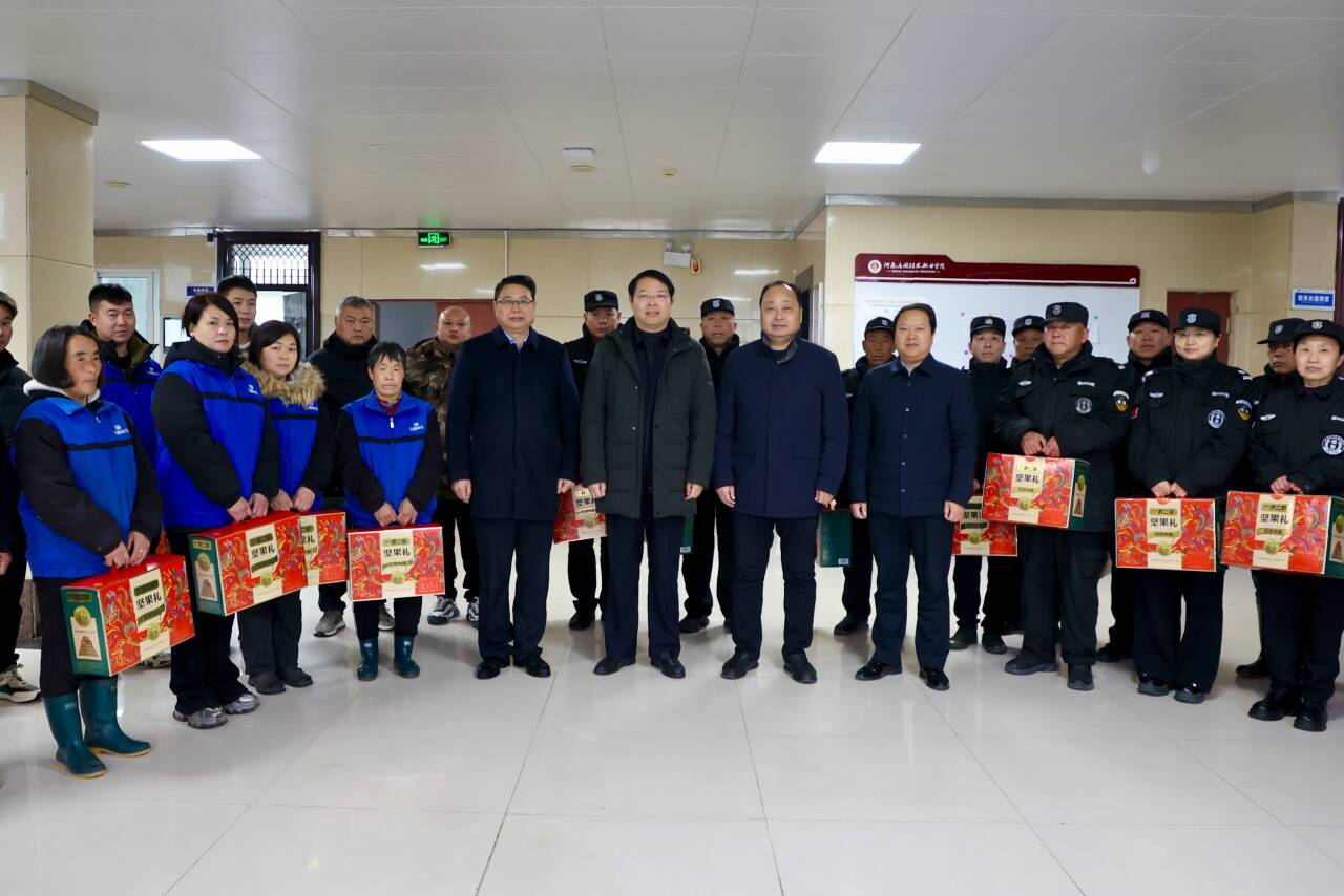 祥龙腾空辞旧岁,金蛇献瑞迎春来。乙巳蛇年春节前后,校党委书记闫俊山、校长薄新党亲切走访慰问春节期间坚守岗位的值班工作人员和一线值守人员,向大家送去节日问候和新年祝福。党委副书记、开封校区管委会主任魏新华,副校长刘振民、常新中陪同走访慰问。