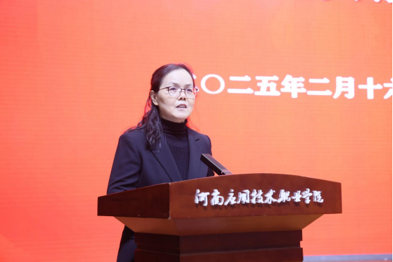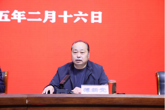 随后,薄新党代表学校简要回顾了学校2024年主要工作,总结通报了2025年寒假期间学校党群、学生、教学等十个方面工作开展情况,安排布置了春季学期整体工作。薄新党指出,2025年是教育强国、教育强省建设全面布局、高位推进之年,也是我校创建“新双高”、实现跨越式发展的关键之年,要紧紧围绕新时代“加快建设现代职业教育体系,培养大国工匠、能工巧匠、高技能人才”总导向、总要求,主动对标对表,再创新佳绩。为此薄新党提出三点要求:一是把牢正确政治方向,坚定不移落实好立德树人根本任务。充分突出党建在办学治校中的基础性、导向性、引领性作用,持续实施时代新人铸魂工程,深入实施“大思政课”建设质量提升工程,推动形成全员、全过程、全方位育人工作新格局。二是坚持产教融合主线,奋楫笃行打好“十四五”建设收官之战。紧紧围绕“一体两翼”为核心的现代职业教育体系建设任务,一体推进育人方式、办学模式、管理体制、保障机制改革,高质量完成“十四五”目标任务,为实现“十五五”良好开局打牢坚实基础。三是紧扣“双高”建设主题,凝心聚力做好高水平专业群创建工作。牢牢把握“办学能力高水平、产教融合高质量”建设导向,着眼“产教适配、内涵适切、发展适势”,以高水平专业群建设,构建完善适应新质生产力发展要求的高技能人才培育培养体系,提高人才培养能力和培养质量。
