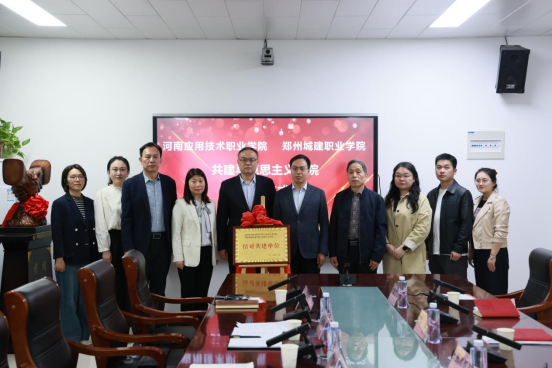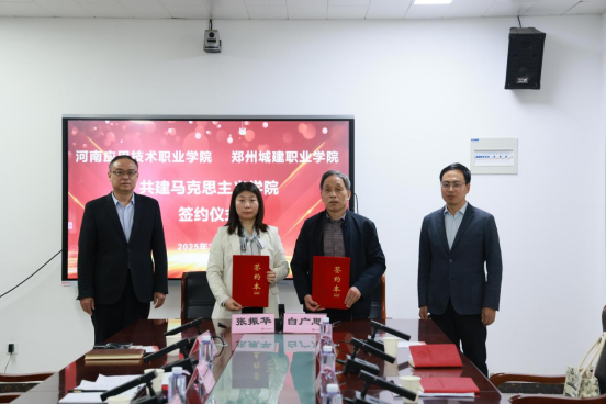 为全面贯彻落实习近平总书记关于思想政治理论课建设的重要指示和党的二十届三中全会精神,进一步发挥省级示范性马克思主义学院的辐射引领作用,根据省委宣传部、省委教育工委、省教育厅《关于印发<河南省高校马克思主义学院结对提升工作方案>的通知》(豫教工委〔2024〕175号)要求,3月25日上午,我校与郑州城建职业学院举行马克思主义学院结对提升签约揭牌仪式。我校副校长黄振中,党委宣传(统战)部部长、马克思主义党总支书记马伟强,马克思主义学院院长张振华,郑州城建职业学院党委副书记张国辉,图书馆馆长、马克思主义学院院长白广思及双方教师代表参加仪式。仪式由马伟强主持。