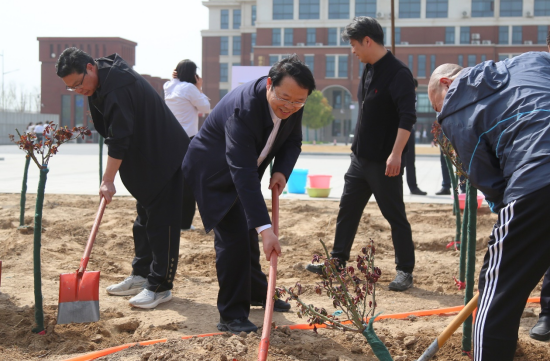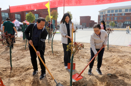 植树风柔春盎然,复苏万物展新妍。3月25日下午,为进一步提升校园绿化品质,优化校园环境,增强党组织凝聚力与向心力,我校在开封校区北院开展“党建红・生态绿——党员先锋林”春季植树主题党日活动。党委书记闫俊山,党委副书记、工会主席陈君丽,党委副书记魏新华,纪委书记陈雅莉,副校长常新中带领全校各基层党总支、直属党支部教职工及二级学院师生积极参与活动,共同为校园播撒绿色的希望。