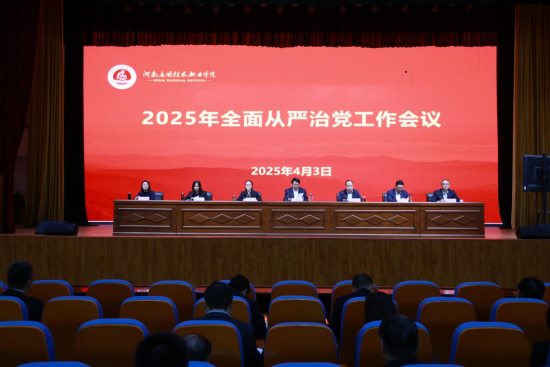 2025年4月3日下午,我校召开2025年全面从严治党工作会议。学校全体党委委员、纪委委员,全体中层干部,各党总支、直属党支部纪检委员参加会议。党委副书记、校长薄新党主持会议。