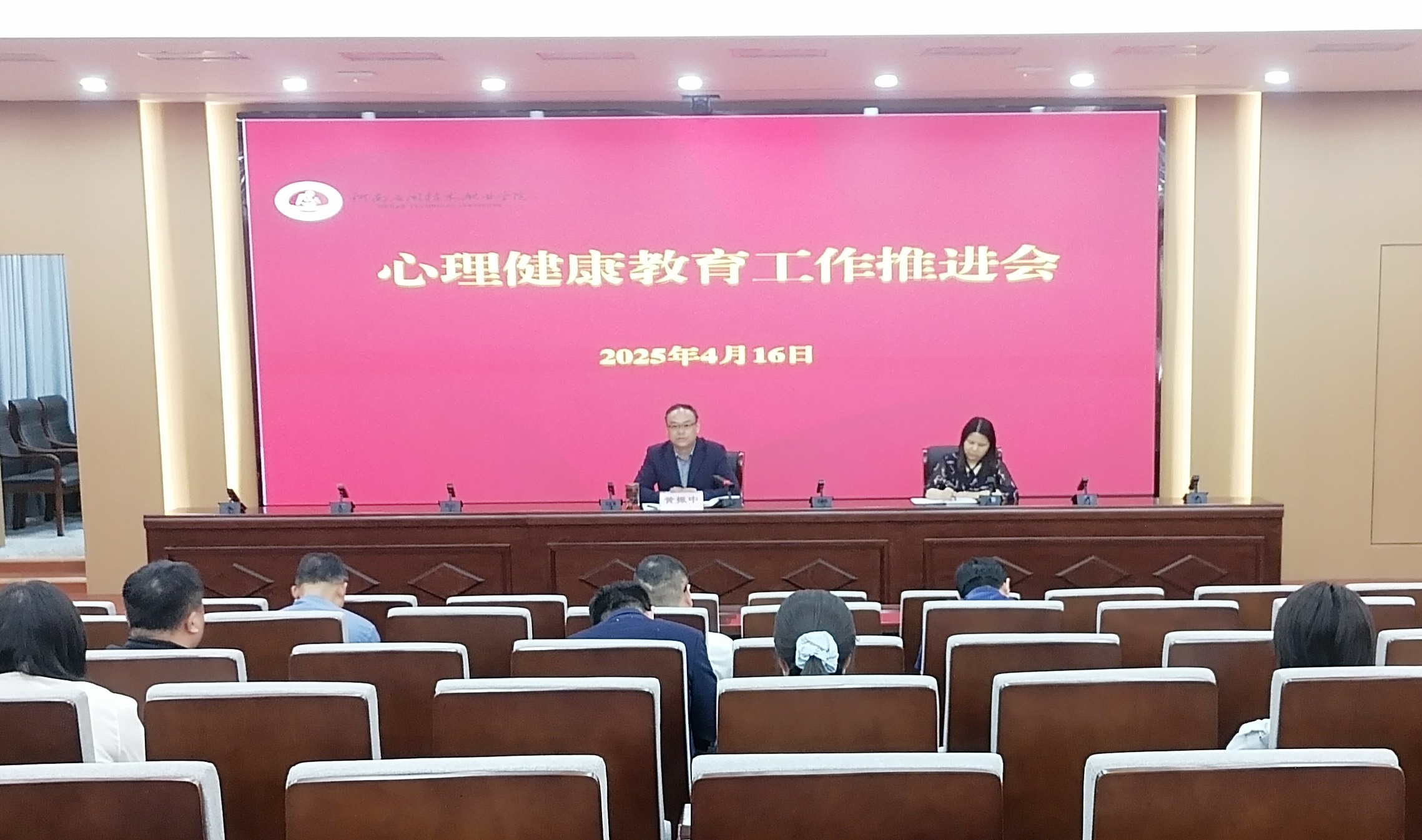 4月16日,我校在郑州、开封校区同步召开心理健康教育工作推进会。副校长黄振中出席会议,党委学生工作部、心理健康教育中心全体教师,各二级院部书记、院长、副书记及心理专员、学工办主任、团总支书记参加会议,会议由心理健康教育中心副主任白亚利主持。