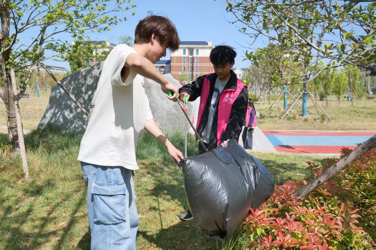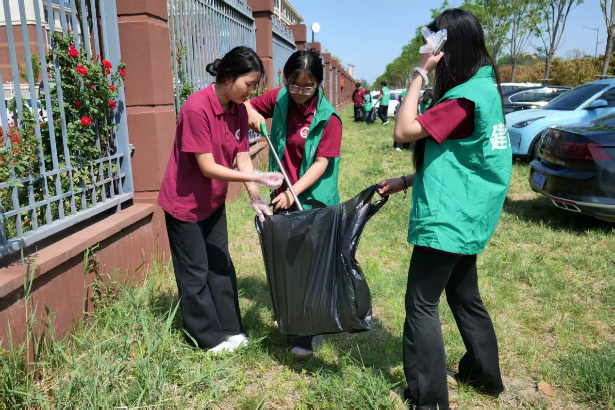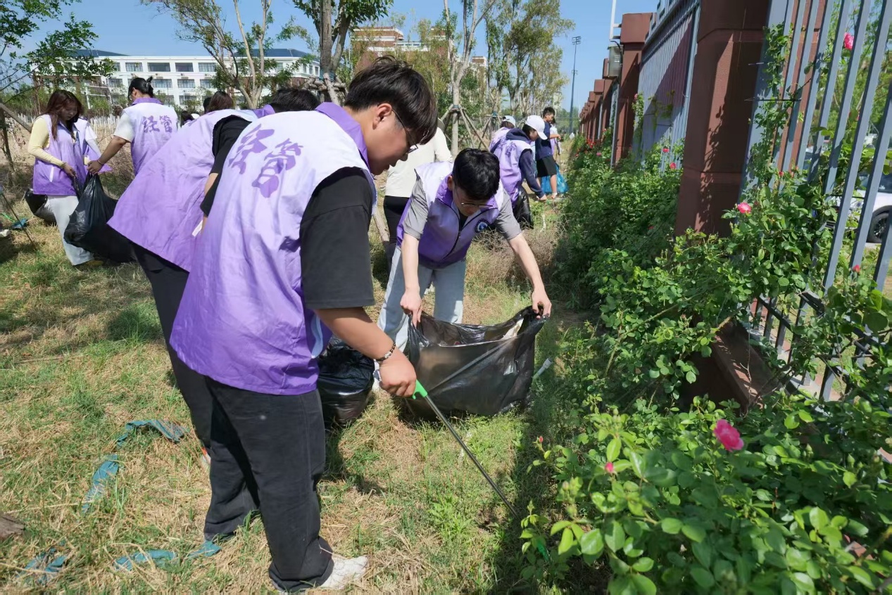 各二级学院志愿者在划定区域内协同作业,经过两个多小时的集中攻坚,校区围墙内外焕发新颜,道路整洁如新,绿植苍翠欲滴。