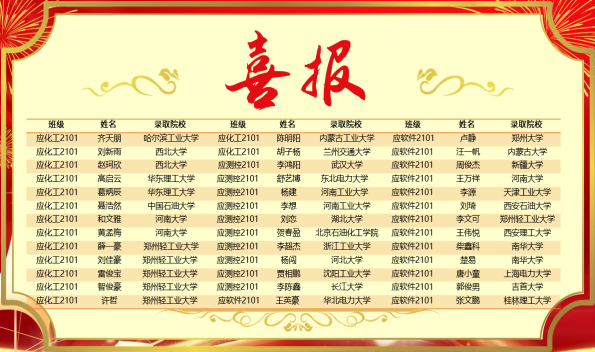 近日,2025年全国硕士研究生录取结果陆续揭晓,我校本科部2025届毕业生再创佳绩。62人参加考研,40人考取硕士研究生,录取率达64.5%。其中,13人被哈尔滨工业大学、武汉大学、郑州大学、华东理工大学、西北大学等双一流建设高校录取。