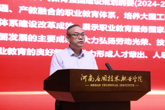 启动仪式上,黄振中宣读了学校《河南应用技术职业学院2025年职业教育活动周实施方案》,明确了本次活动周主题、主要活动、工作要求等。