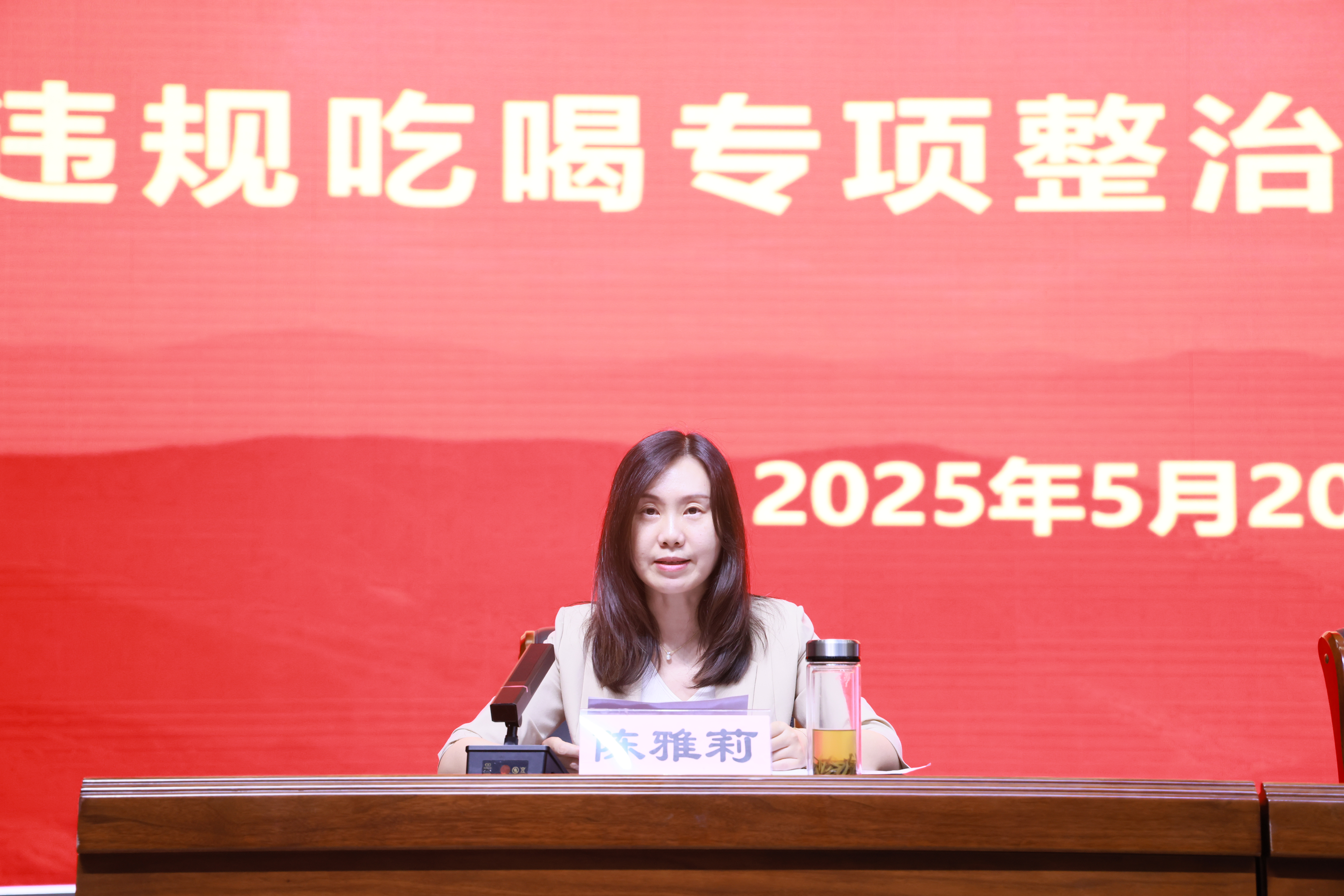 纪委书记陈雅莉同志传达中央层面深入贯彻中央八项规定精神学习教育工作专班、中央纪委办公厅关于李献林、叶金广等人违规吃喝严重违反中央八项规定精神问题的通报,对典型案例进行剖析,针对精准辨别风险做出工作提醒。