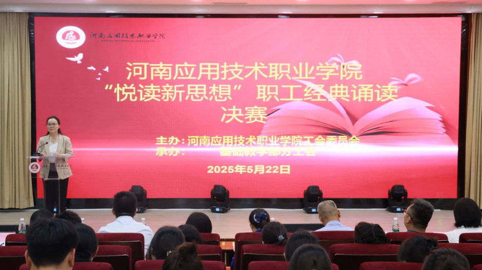 5月22日,我校在郑州校区成功举办“悦读新思想”职工经典诵读决赛。来自全校18个分工会的67名教职员工同台竞技,以声传情,在诵读中感悟思想伟力,展现新时代教师昂扬向上的精神风貌。