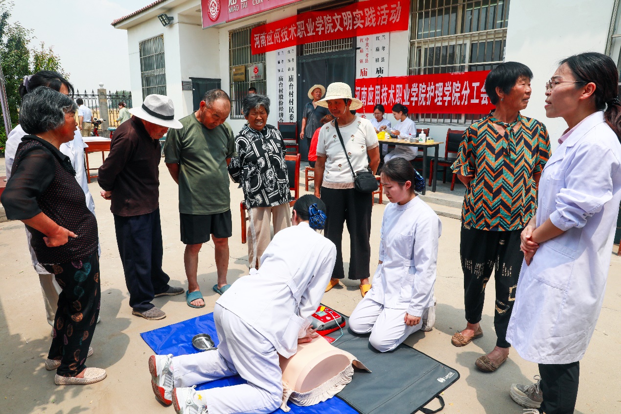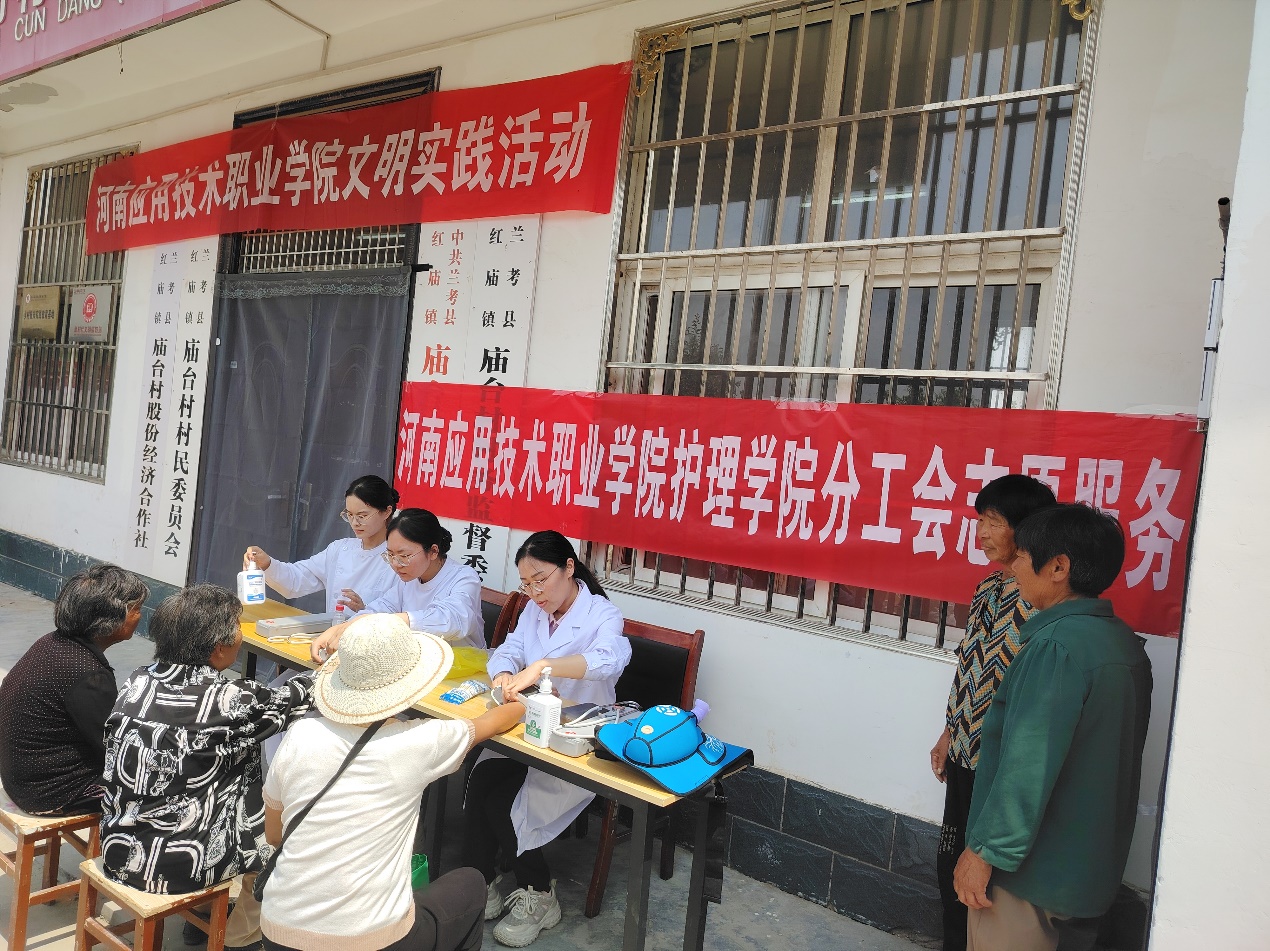 座谈会后,我校护理学院师生在村委党群服务中心开展健康知识宣讲和义诊活动。师生们耐心细致地为村民提供健康咨询、基础检查等服务,普及疾病预防和保健知识,并结合个人健康状况针对性地进行健康指导。