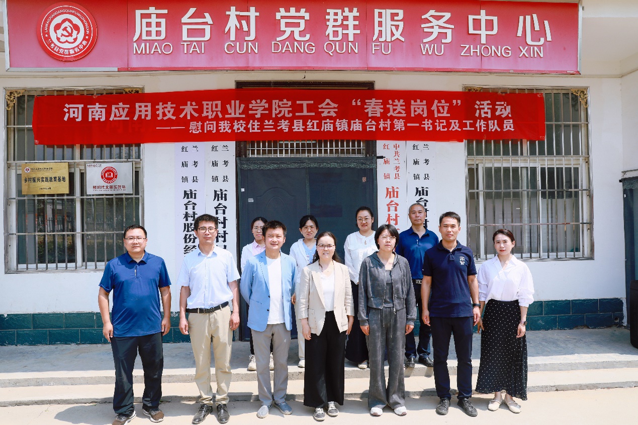 为深入贯彻落实党中央、国务院关于乡村振兴战略的方针政策和决策部署,切实加强对驻村工作队员的关心关爱,2025年5月28日,校党委副书记、工会主席陈君丽一行赴兰考县红庙镇庙台村开展“春送岗位”走访慰问活动。红庙镇党委副书记李帅、庙台村党支部书记任勤勤及我校驻村工作队全体成员参加活动。