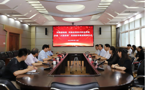 仪式上,王九位对河南应用技术职业学院一行的到来表示热烈欢迎,并介绍了博物院在文物保护、文化传承与社会教育等方面的工作成果。他指出,与高校共建实践教学基地,是博物院发挥社会教育功能的重要途径。未来,博物院将充分发挥资源优势,精心策划主题展览、研学活动,为学校师生提供优质的实践平台,与学校携手打造思政教育与文化传承创新融合的典范。