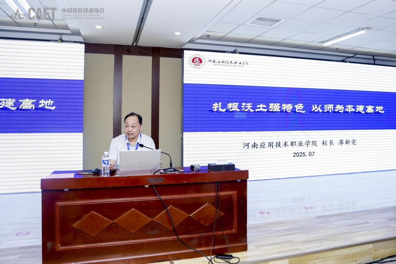 薄新党围绕职业教育分会教师发展与培训工作作主题报告。他从学校基本情况介绍、办学成果展示、创新工作举措以及未来启示与展望四个方面进行经验分享。薄新党表示,多年来,学校高度重视信息化、数字化、智能化建设,始终坚持以推进教师数字化能力水平提升为抓手,全面赋能学校专业建设、教学科研和产教融合等重点工作,着力培养适应数智时代需求的复合型人才,不断为区域产业发展注入新动能,推进教育链、产业链、创新链深度融合。