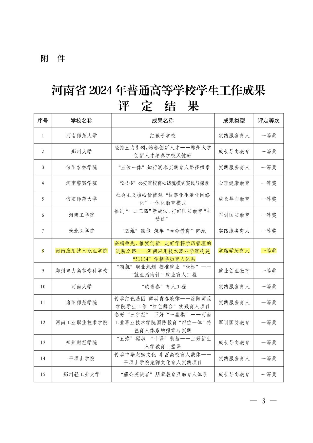 近日,河南省教育厅公布了2024年普通高等学校学生工作成果评选结果,经材料评审、现场答辩、实地考察等环节,我校申报的《奋楫争先,惟实创新:走好学籍学历管理的进阶之路——河南应用技术职业学院构建“51134”学籍学历育人体系》项目荣获一等奖,实现学生工作成果的新突破!
