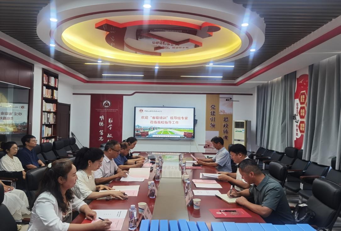 8月20日上午,河南省职业院校教师省级培训第五视导专家组一行在组长赵扬的带领下莅临我校,对我校承办的省级职业院校骨干教师培训工作开展全面视导。副校长黄振中,教务处处长孙勇、副处长李元元,财务处副处长周莉娜,各培训项目负责人及相关工作人员参加会议。会议由孙勇主持。