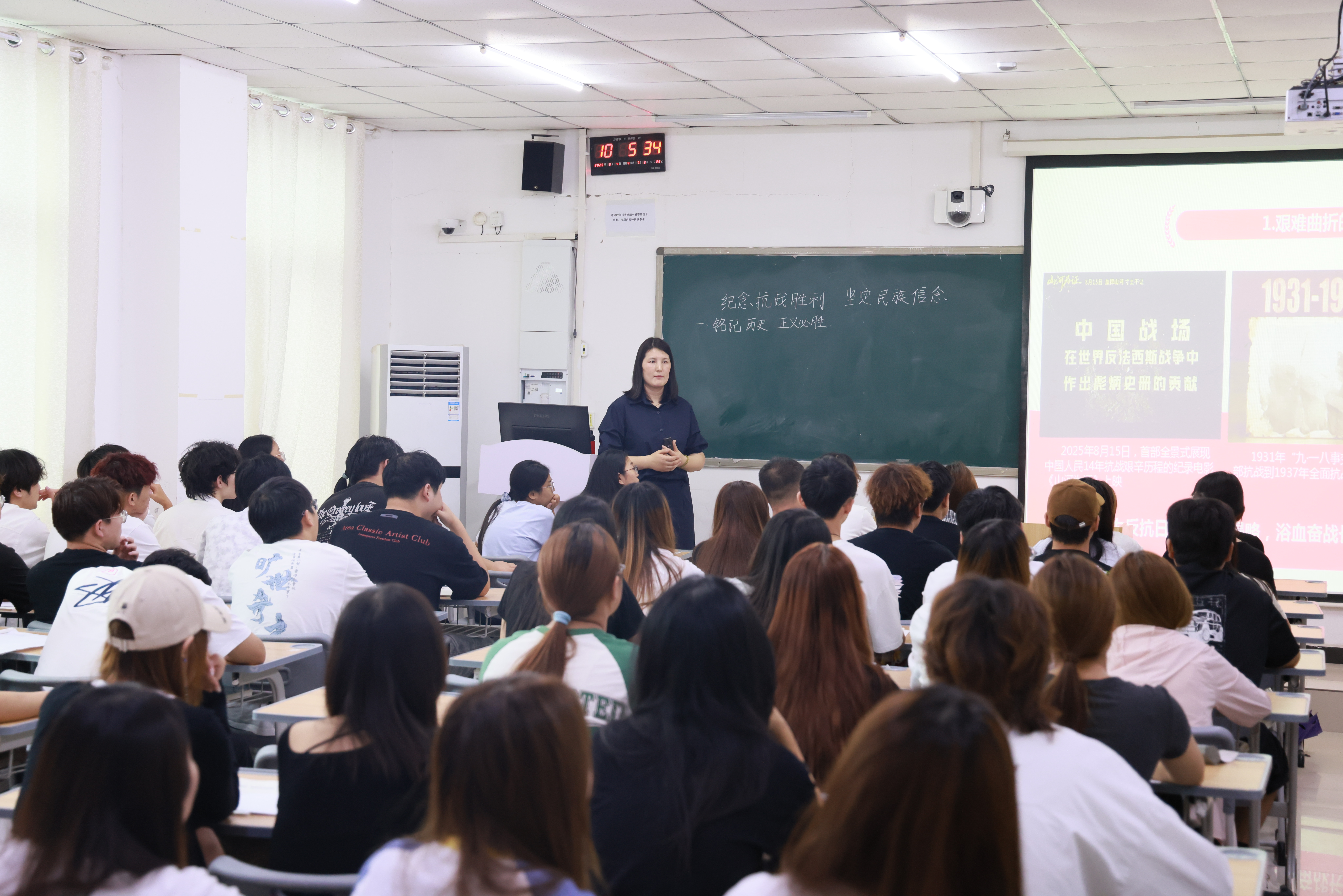 徐小洁老师围绕“开学第一课”“纪念抗战胜利、坚定民族信念”主题,以纪念中国人民抗日战争暨世界反法西斯战争胜利80周年大会为切入点,对铭记历史、正义必胜进行了详细讲述,课堂氛围活跃,师生互动积极。