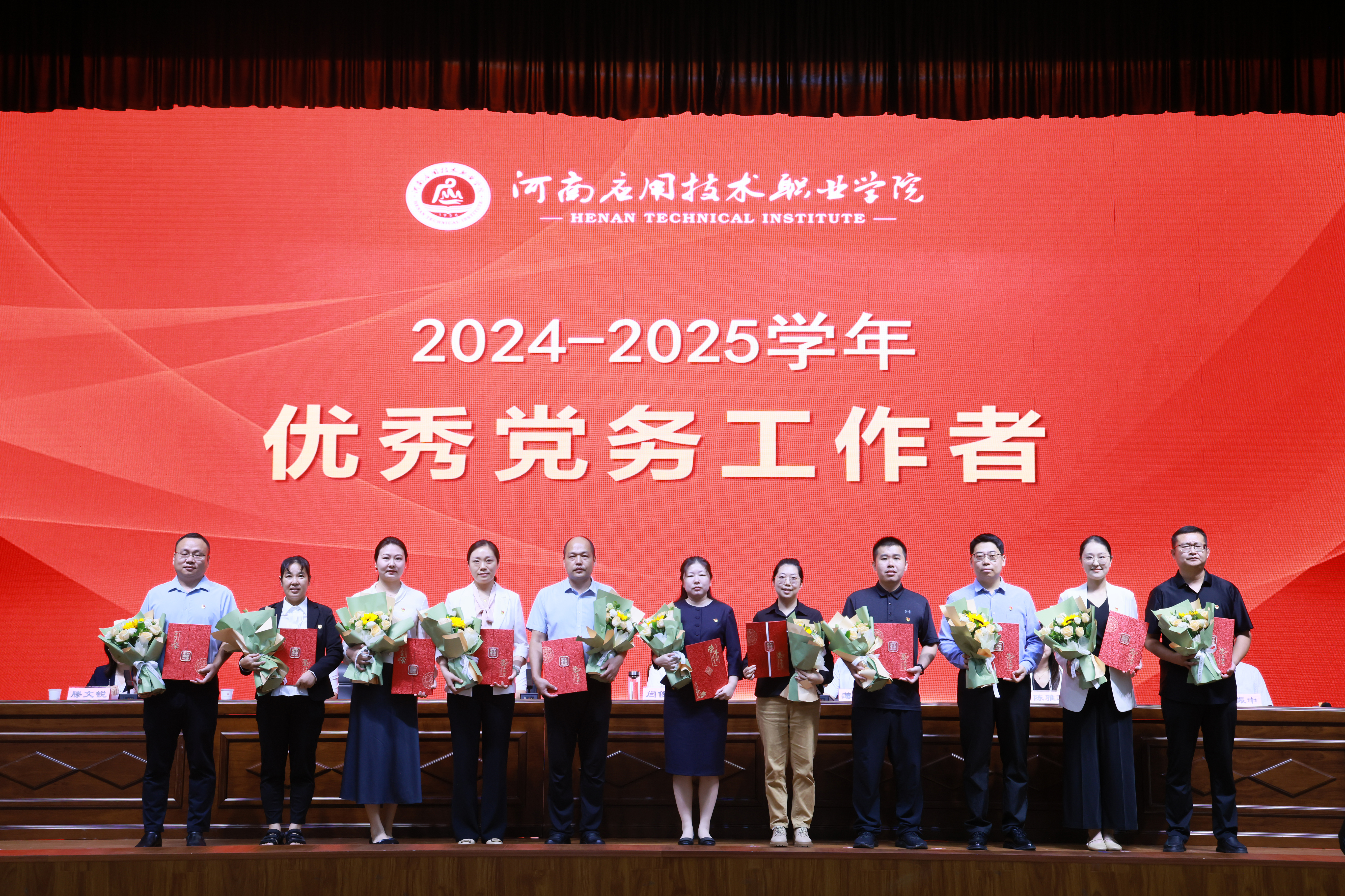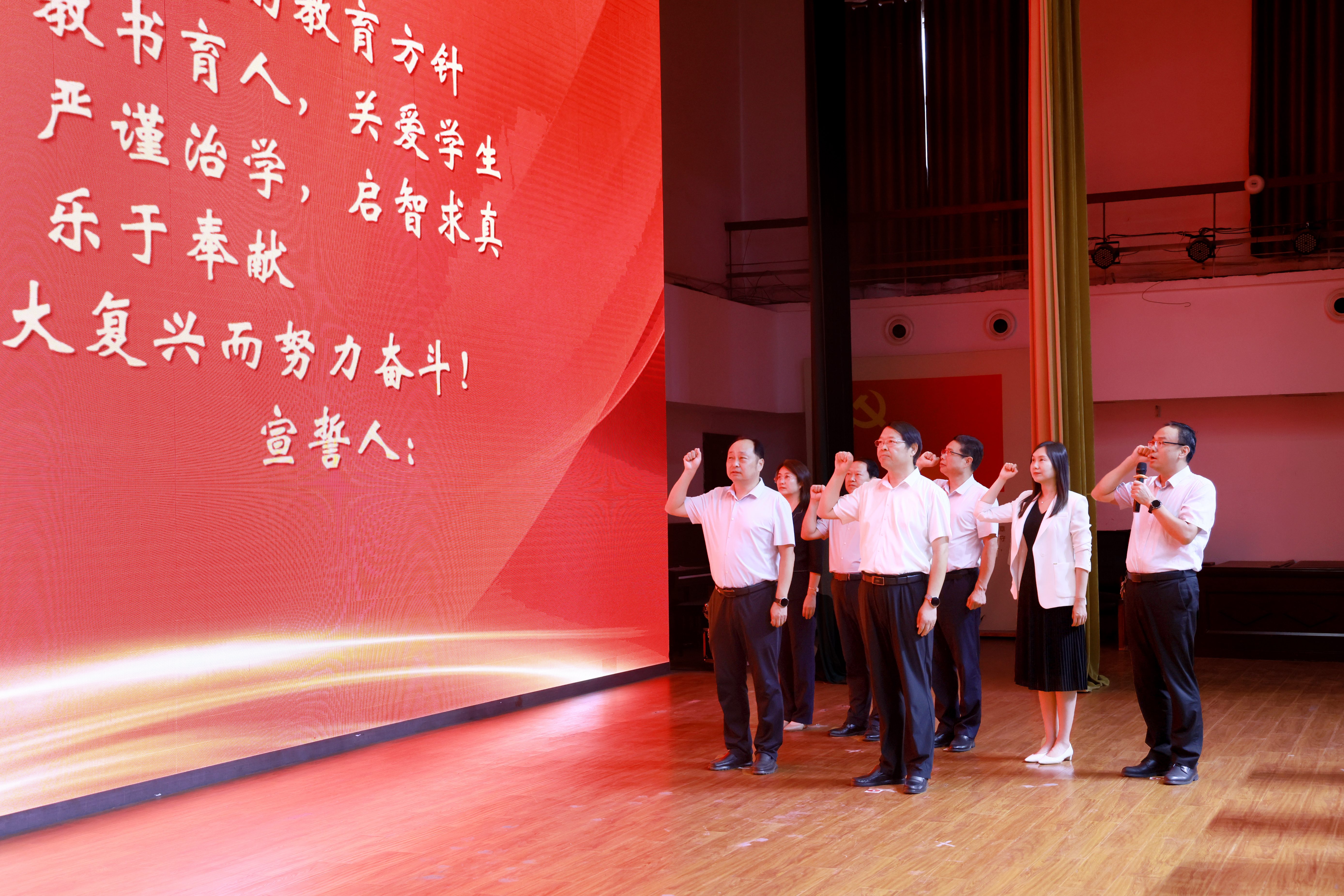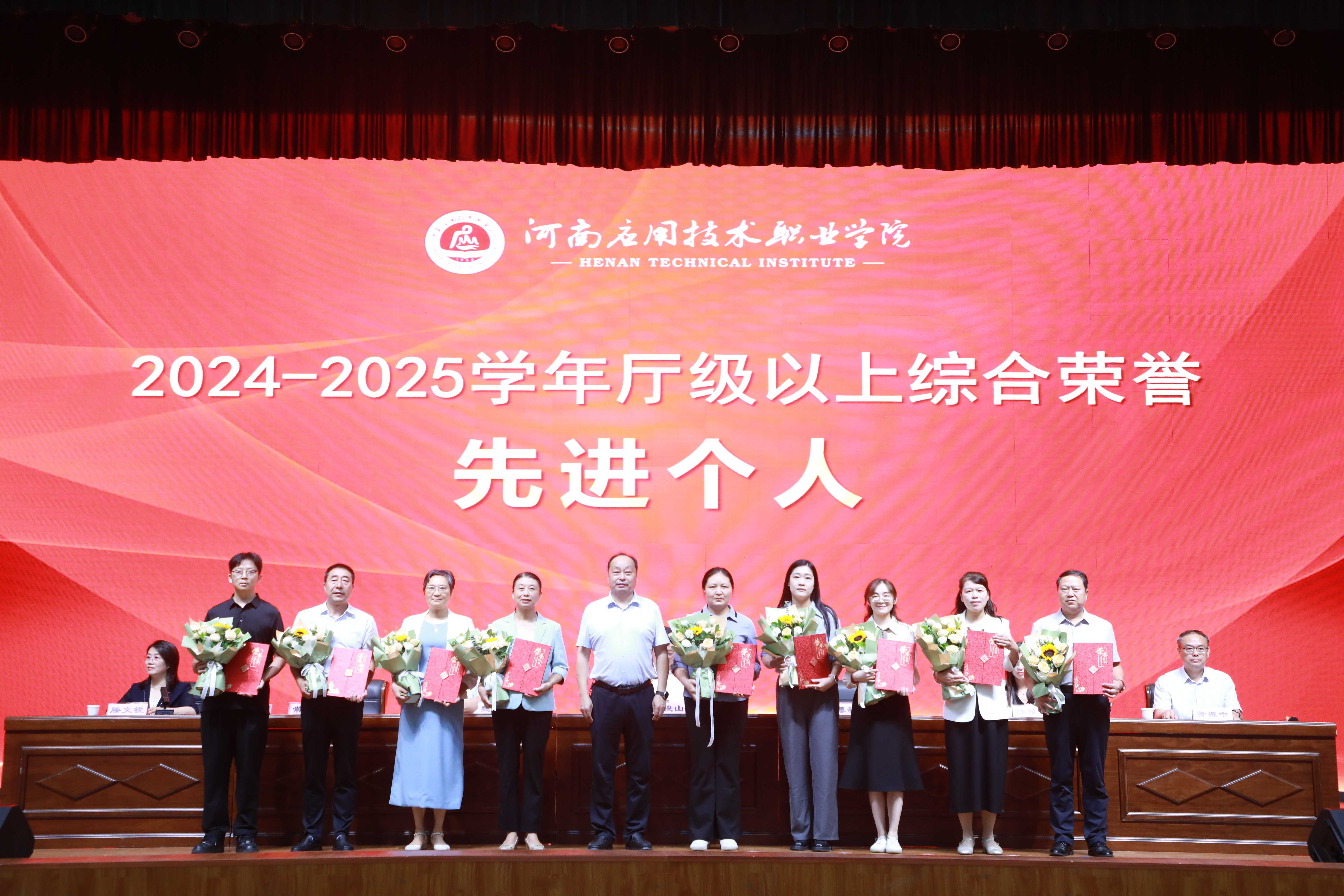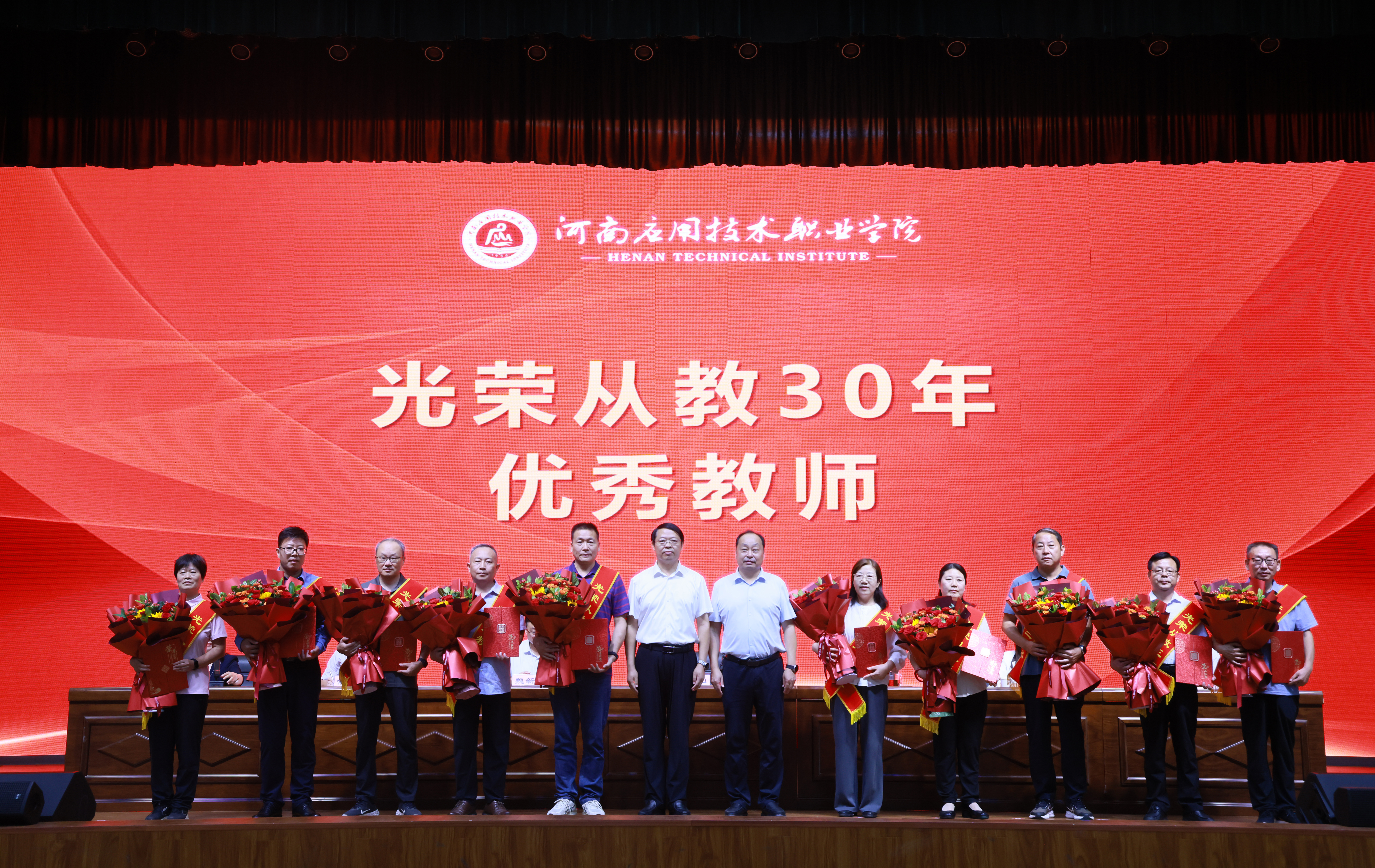 大会在庄严的国歌声中拉开帷幕。会上,副校长黄振中带领参会人员重温了教师誓词。党委副书记魏新华宣读了学校党委《关于对2024-2025学年获得厅级以上综合荣誉的先进集体和先进个人进行通报表彰的决定》《关于表彰“出彩河南人”2025最美教师的决定》和《关于表彰先进基层党组织、优秀共产党员和优秀党务工作者的决定》;副校长滕文锐宣读了学校《关于表彰光荣从教三十年教师的决定》和《关于表彰2024-2025学年先进集体和先进个人的决定》。