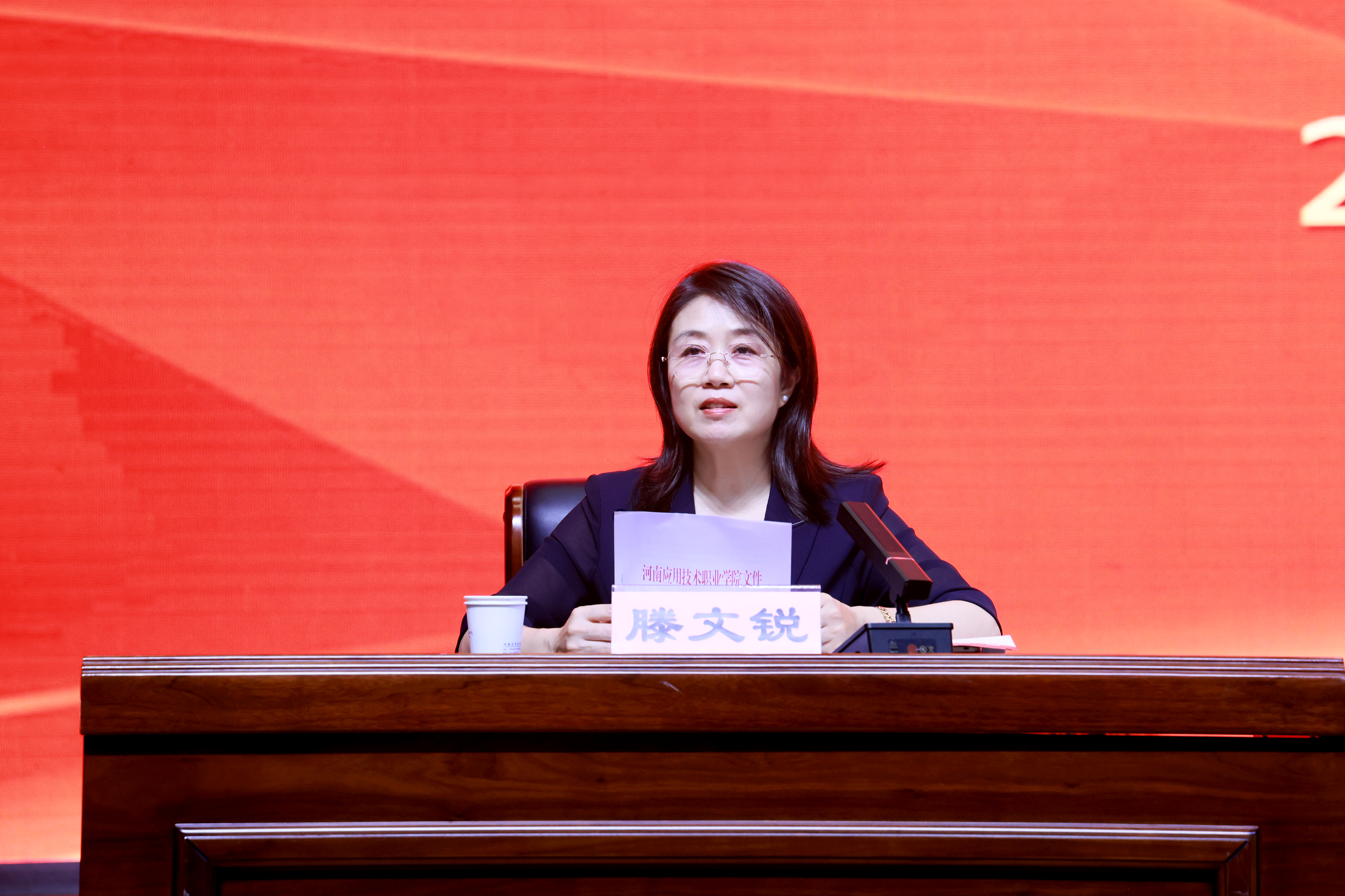 校长薄新党在主持会议时号召全体教职员工要以今天大会精神为指引,牢牢把握“办学能力高水平、产教融合高质量”建设导向,以更加昂扬的姿态,更加优良的作风,弘扬践行教育家精神,争做“经师”和“人师”相统一的“大先生”,当好学生成长的“引路人”,为教育强国、教育强省建设,为奋力谱写中原大地推进中国式现代化新篇章应院实践,作出新的更大贡献!