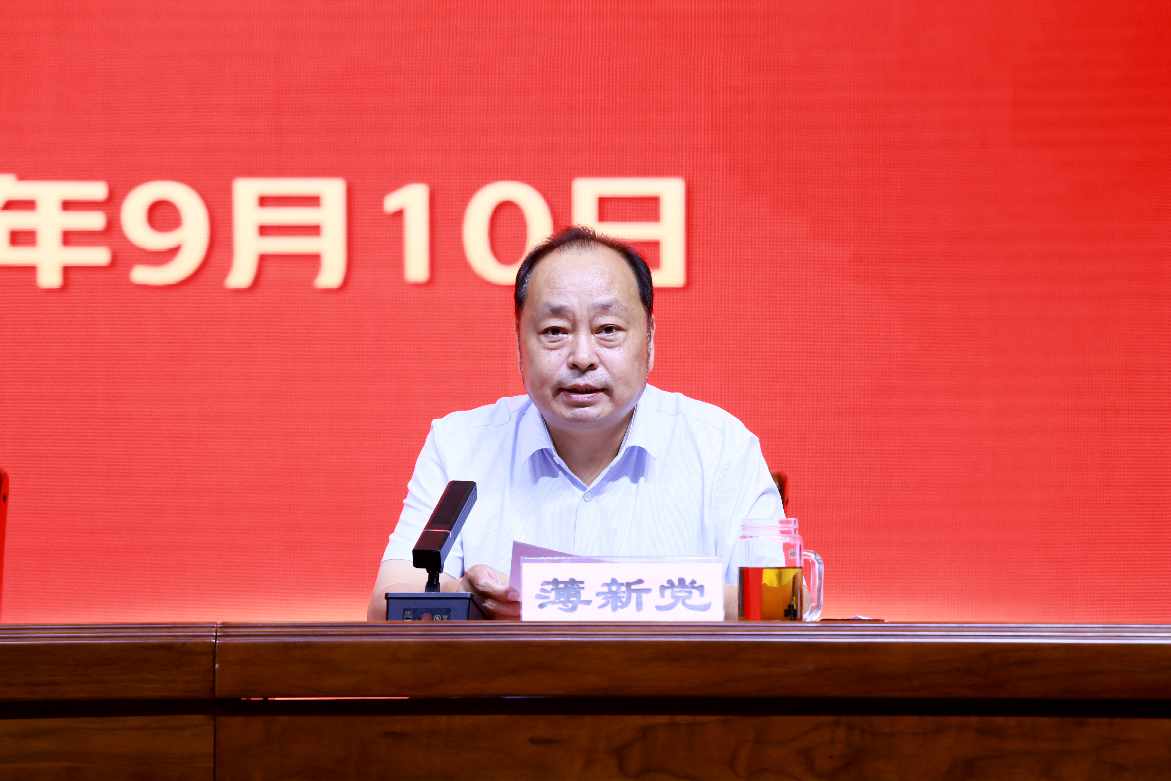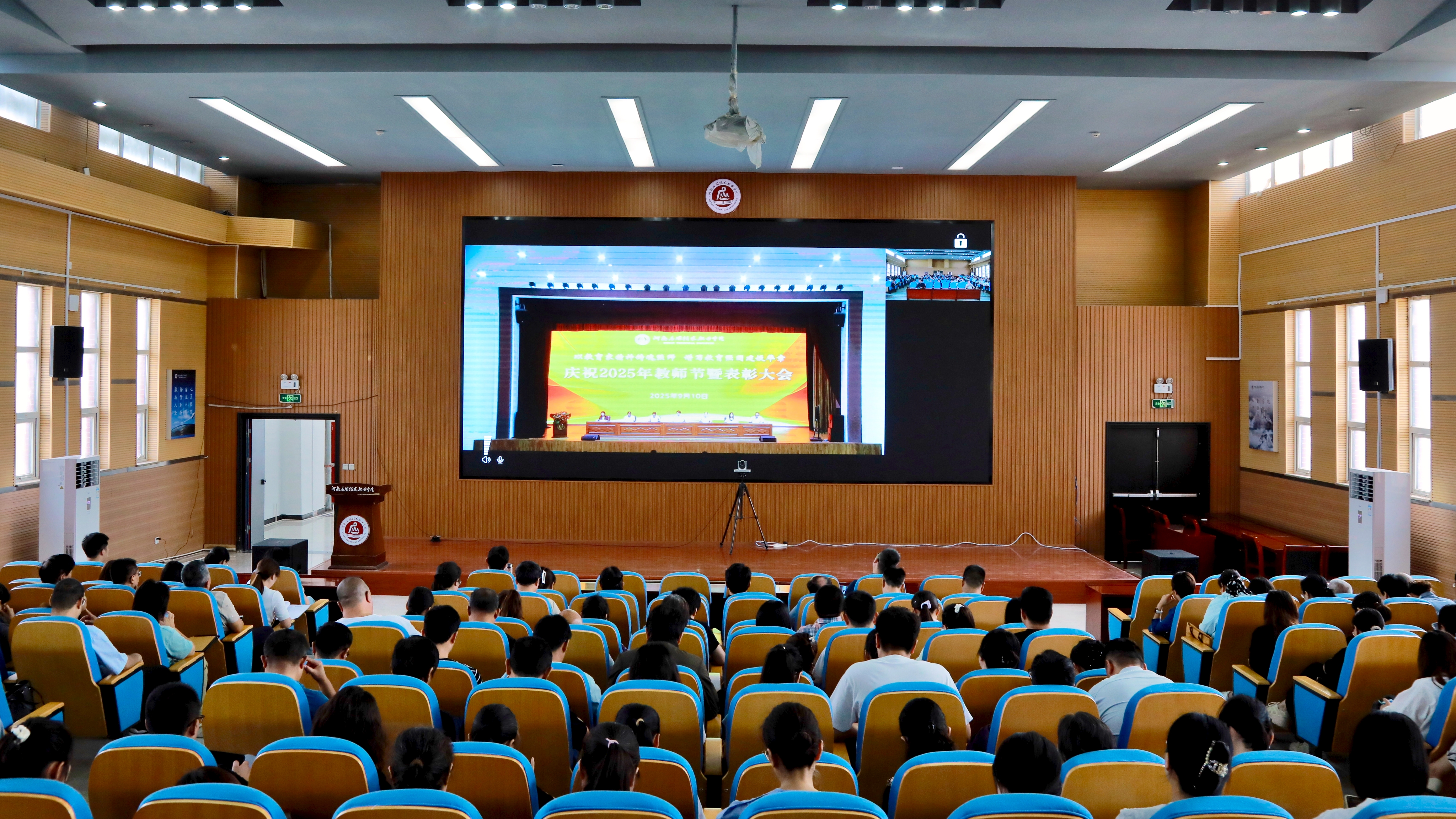 在第41个教师节来临之际,为大力弘扬教育家精神,表彰先进典型,凝聚育人力量,9月10日上午,我校在学生活动中心隆重举行“以教育家精神铸魂强师,谱写教育强国建设华章”主题庆祝暨表彰大会,向深耕于立德树人、培根铸魂事业的全体教师致以崇高敬意与诚挚祝福。全体在校领导出席大会,全校教职员工参会。大会由校长薄新党主持。