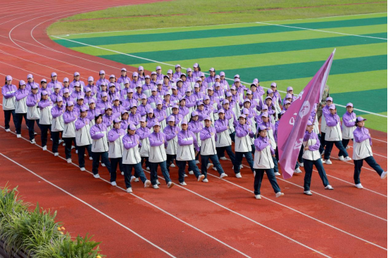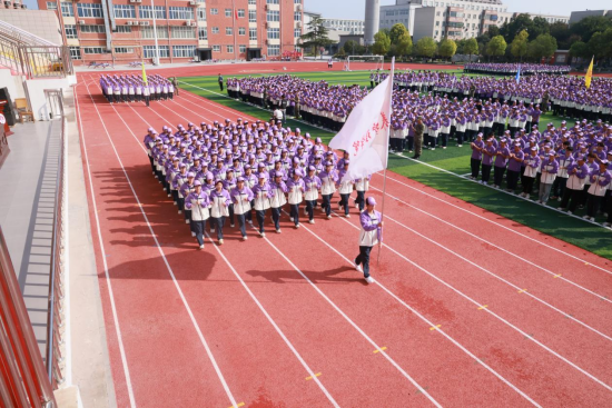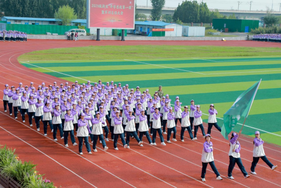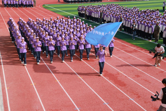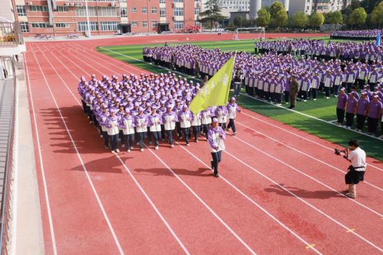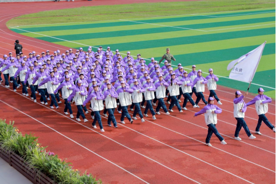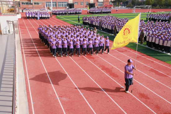 上午9时,大会在庄严的国歌声中拉开帷幕。2025级军训方队依次进行队列会操展示,各专业方队也逐一亮相。