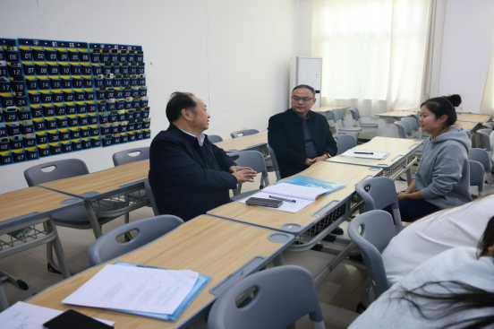 为深入贯彻落实《教育部办公厅关于开展2025-2026学年高校思政课课堂教学提升行动的通知》(教社科厅函〔2025〕10号)工作要求,近日,党委书记闫俊山,校长薄新党,党委副书记、工会主席陈君丽,副校长黄振中深入思政课教学一线,听取了马克思主义学院教师侯艳娜讲授的“毛泽东思想和中国特色社会主义理论体系概论”课程和赵璐讲授的“形势与政策”课程。