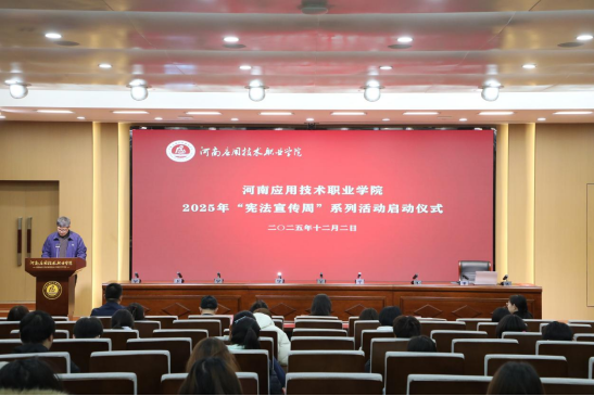 12月2日,在第十二个国家宪法日即将到来之际,我校在郑州校区1号实训楼报告厅举行“宪法宣传周”系列活动启动仪式。副校长滕文锐出席仪式,院长办公室(依法治校办公室)、党委学生工作部(学生处、武装部)、团委主要负责人和部分师生代表参加活动。启动仪式由院长办公室主任张凡主持。