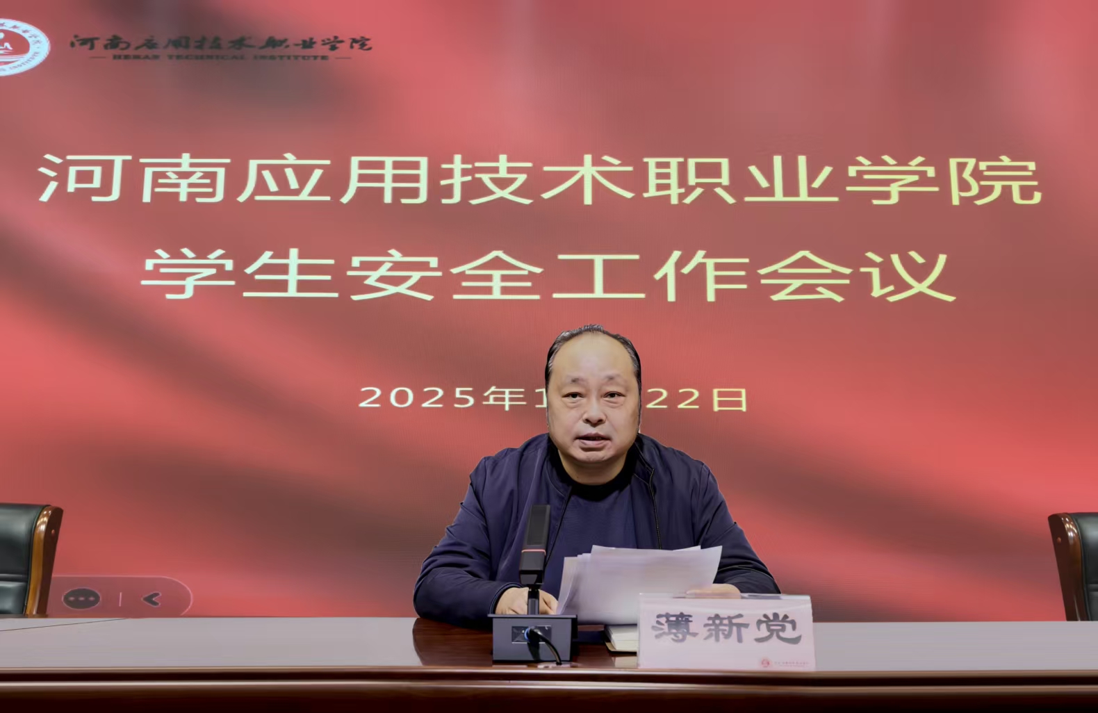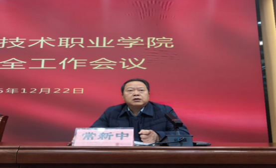 为深入贯彻全省教育系统安全稳定工作会议精神,并结合我校实际针对重要时间节点和学期末安全稳定工作要求,12月22日下午,我校召开2025年学生安全工作专题会议。校长薄新党,副校长常新中、黄振中出席会议,相关部门负责人,各二级学院党总支书记、副书记参加会议。会议由常新中主持。
