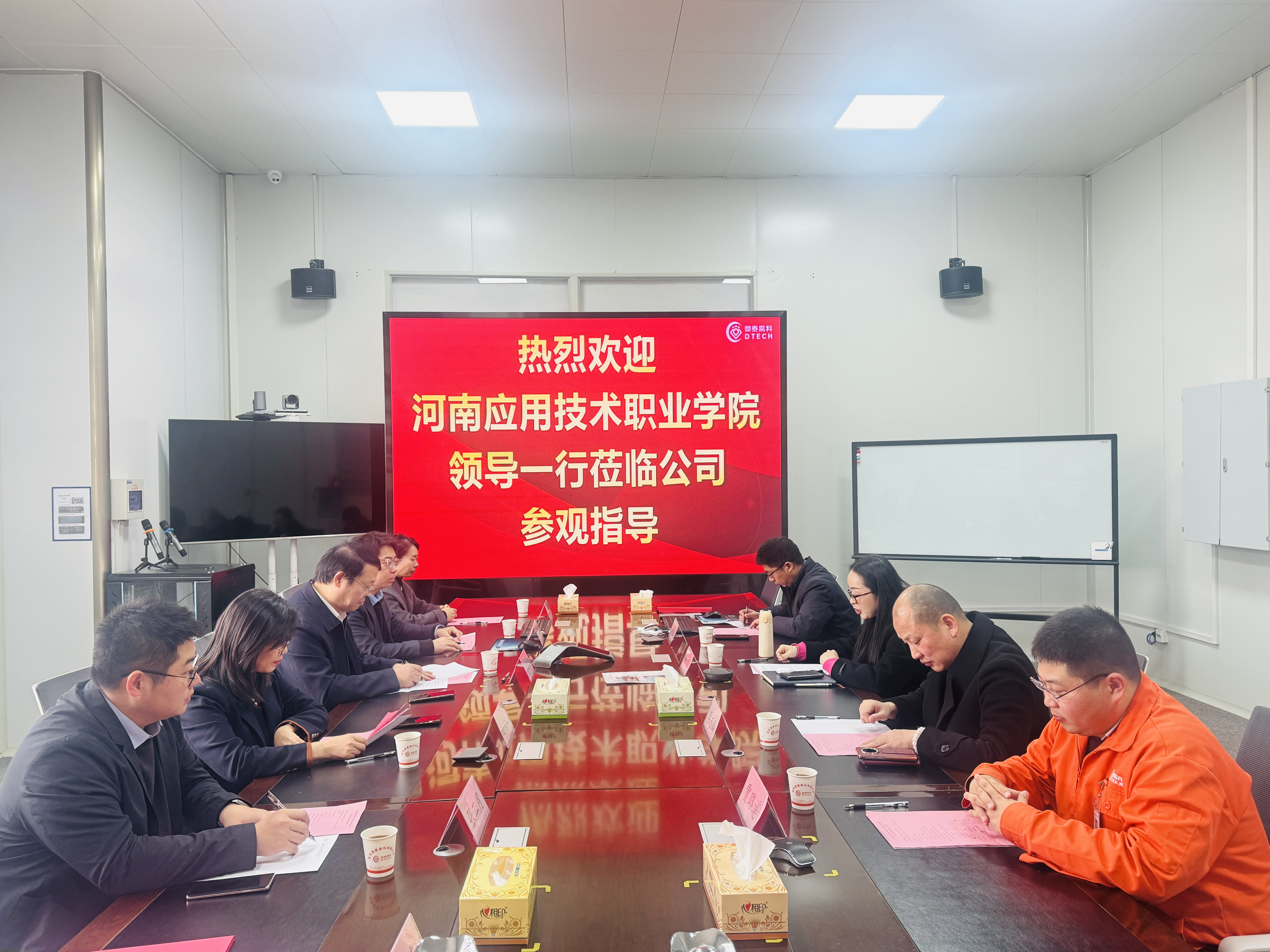 闫俊山对鼎泰高科长期以来对学校的支持表示感谢。他指出,此次走访既是落实上级专项行动的具体实践,也是深化校企合作、促进毕业生高质量就业的重要途径。他详细介绍了我校2026届毕业生的整体规模、专业结构及人才培养特色,强调学校坚持聚焦河南省“1+2+4+N”目标任务体系,以服务国家战略和区域经济社会发展为己任,将就业工作摆在突出位置,希望通过交流合作,精准把握企业人才需求与行业发展趋势,共同构建校企协同育人长效机制,为毕业生开拓更多优质就业岗位。