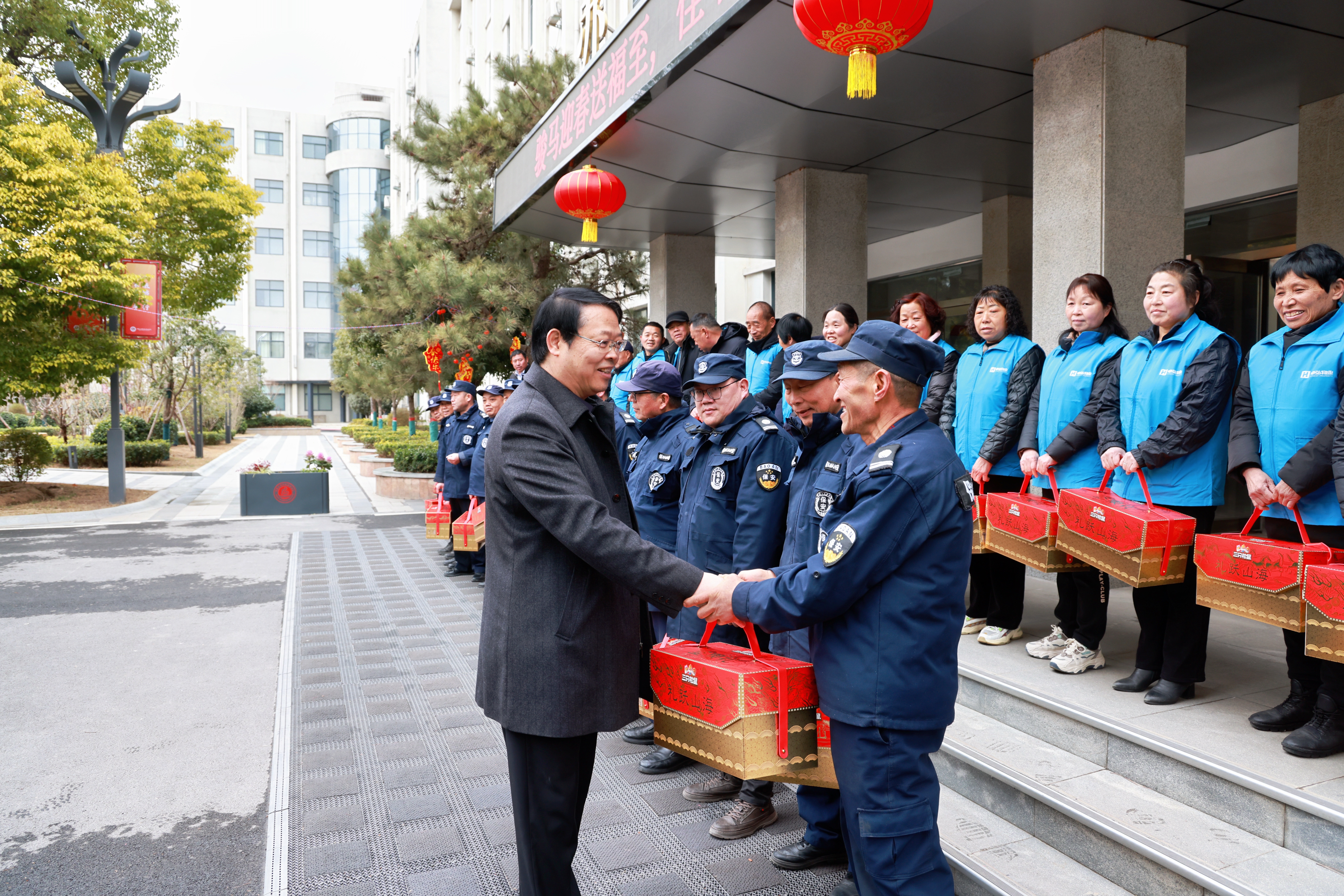 2月17日上午,薄新党一行前往开封校区开展慰问活动,向节日期间坚守岗位的值班工作人员、一线值守人员送上新春问候和马年祝福,并发放了新春慰问品,把学校的关怀与温暖送到每一位值守人员的心坎上。薄新党指出,过去一年,全体值班人员恪尽职守、默默奉献,用坚守筑牢校园安全防线,用担当守护师生平安福祉,为学校高质量发展提供了坚实保障。值此马年新春,值守人员舍小家、顾大家,坚守工作岗位、践行责任使命。新的一年要延续优良作风,以“骐骥驰骋、势不可挡”的昂扬姿态履职尽责,严把安全关、筑牢防护线,全力守护校园平安,为学校新一年发展开好局、起好步保驾护航。