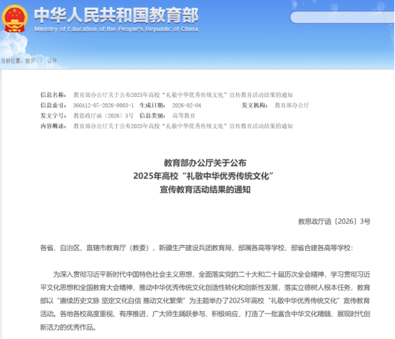 高校“礼敬中华优秀传统文化”宣传教育活动由教育部主办,是面向全国高校开展的一项重要思政品牌活动。该活动旨在引导师生深入把握中华文明的历史脉络与精神特质,坚守文化立场,传承优秀传统,推动文化创新,进一步增强文化自觉与文化自信,营造弘扬中华优秀传统文化的浓厚校园氛围。