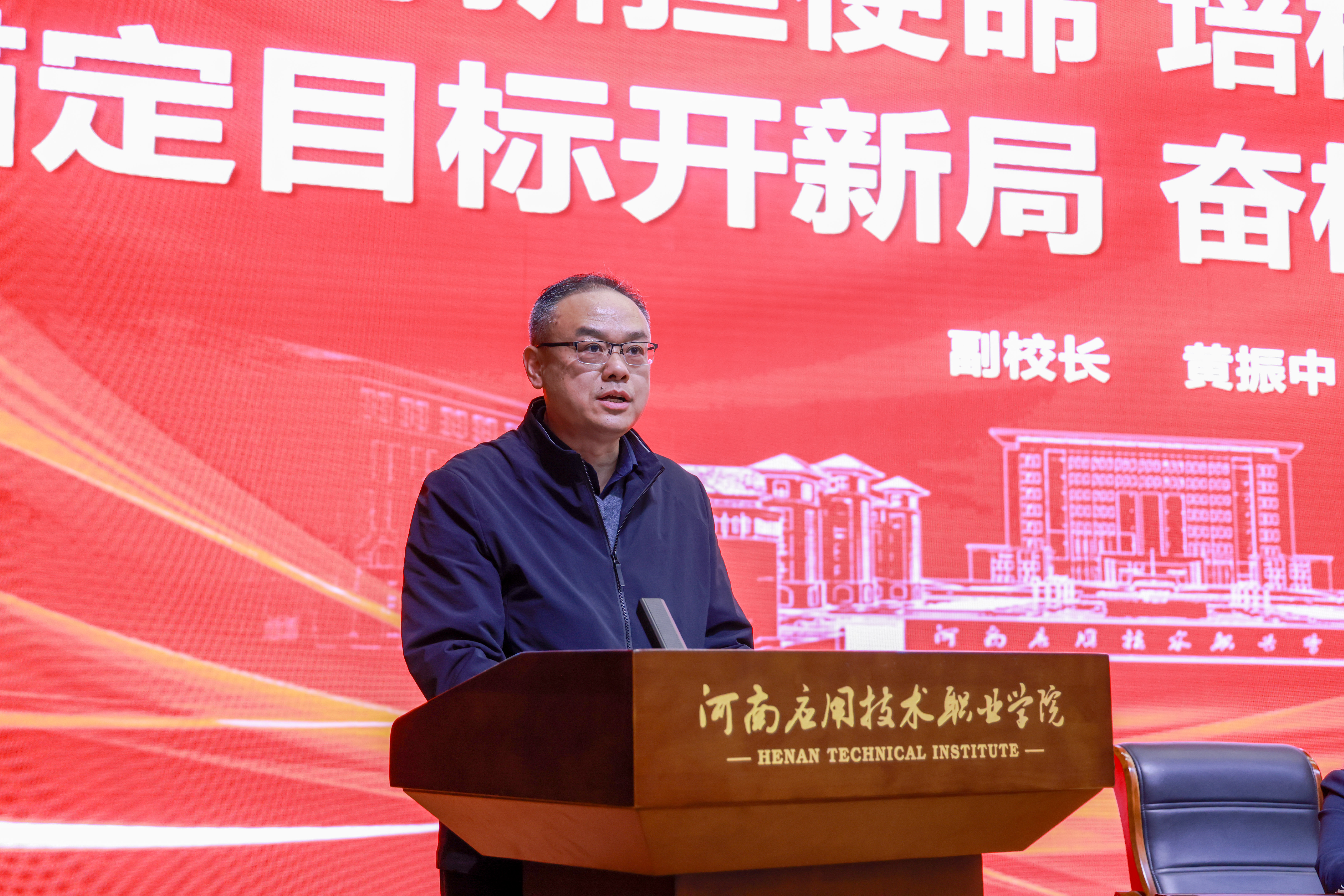 副校长黄振中作学生工作报告。报告紧扣立德树人根本任务,全面总结2025年学生工作成果,围绕2026年学校高质量发展与“双高”建设目标,聚焦思政铸魂、学风建设、精准服务、队伍建设、安全维稳、协同育人六大任务,守正创新、真抓实干,推动学生工作提质增效,培育高素质技术技能人才、能工巧匠和大国工匠。