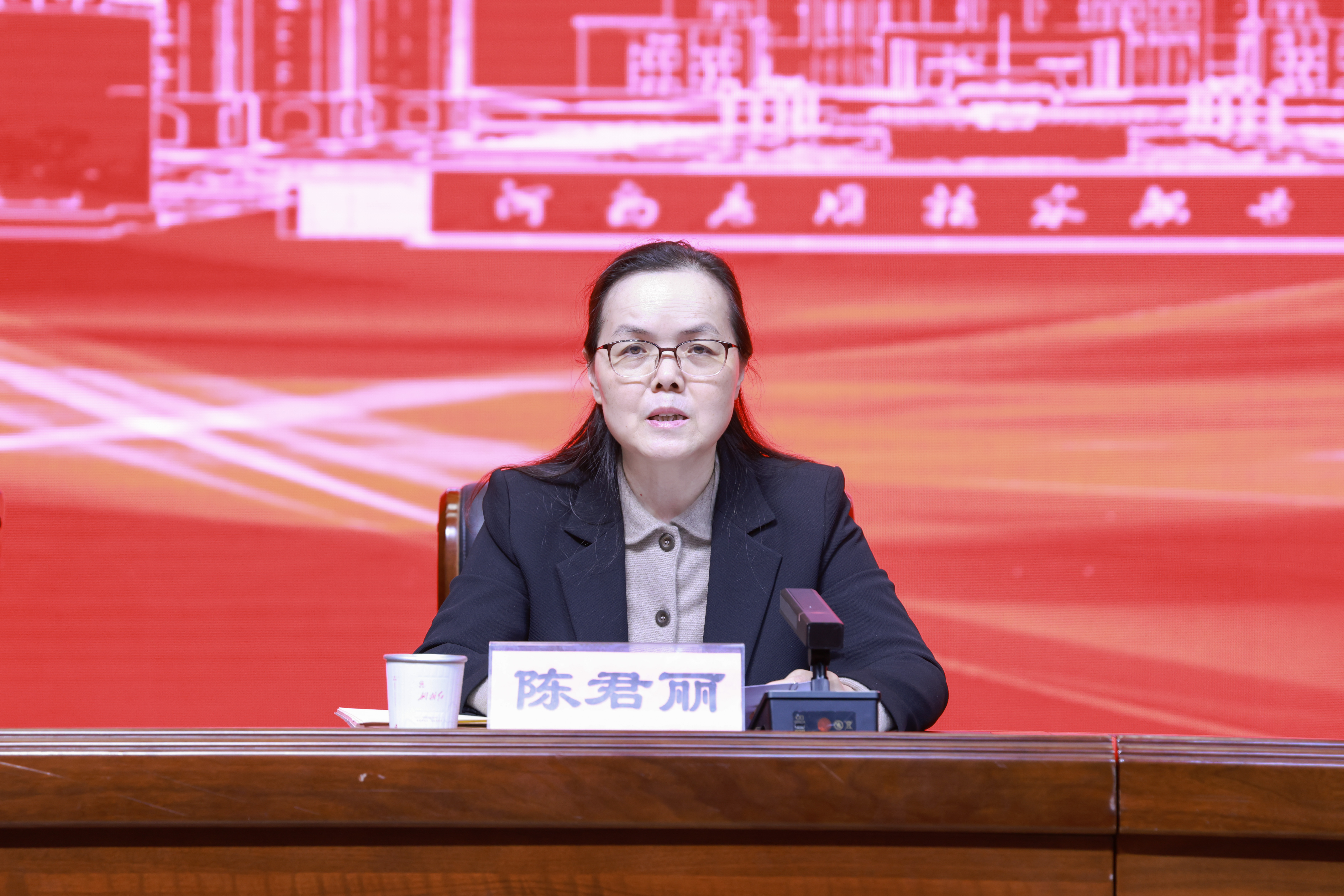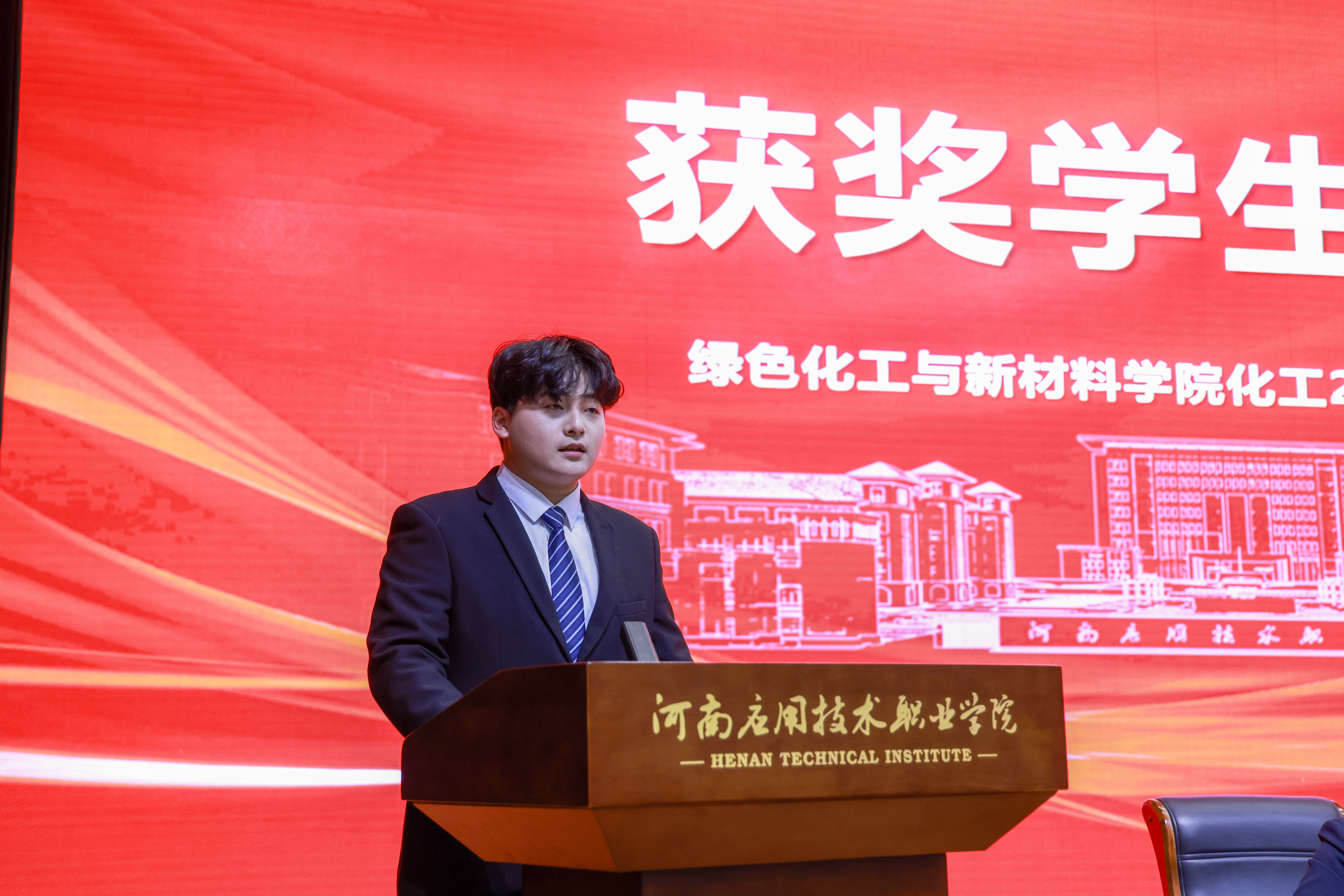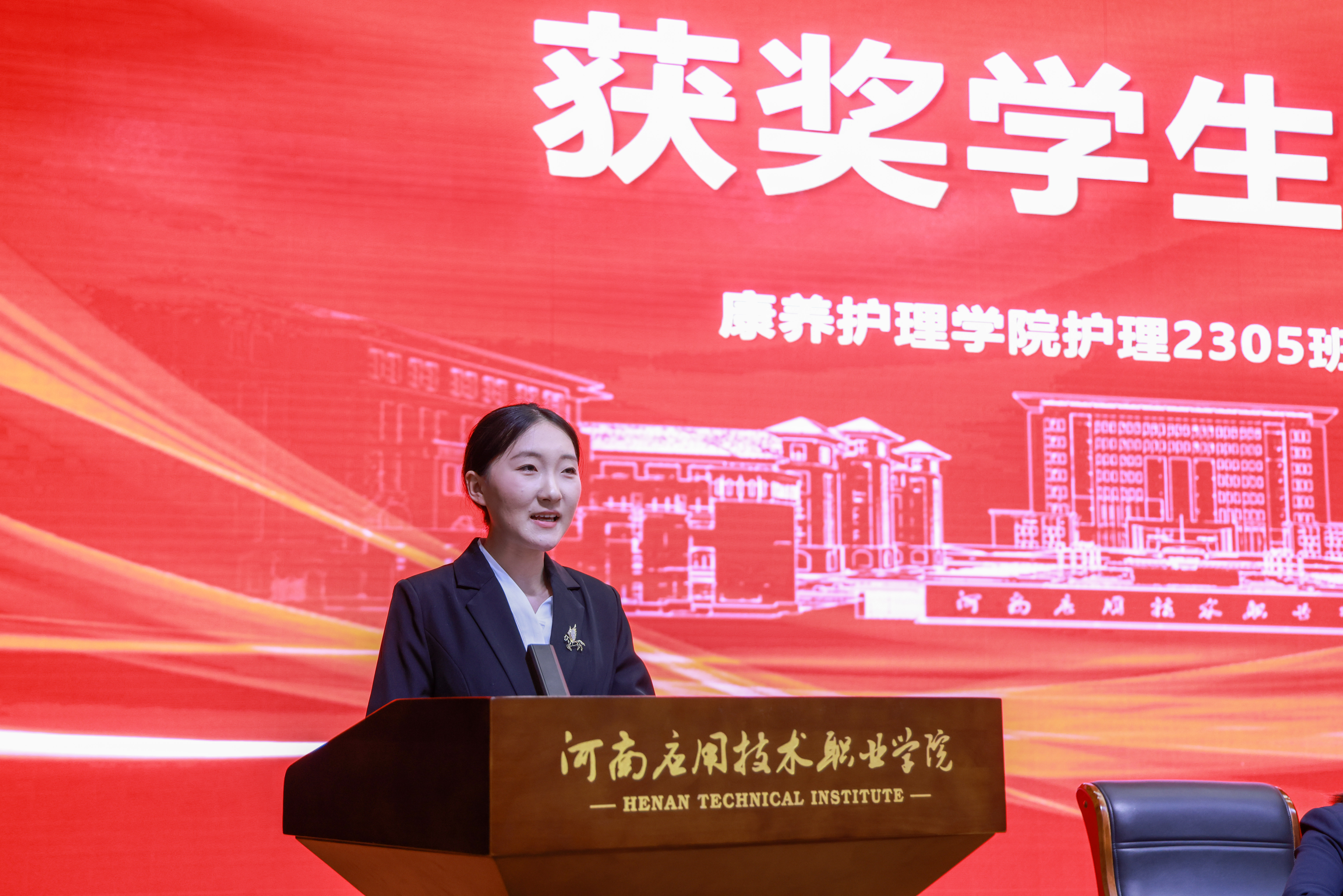 党委副书记、工会主席陈君丽宣读《河南应用技术职业学院关于表彰2025年国家奖学金、国家励志奖学金获得者的决定》等6个表彰文件。与会校领导为获奖集体与个人颁奖。