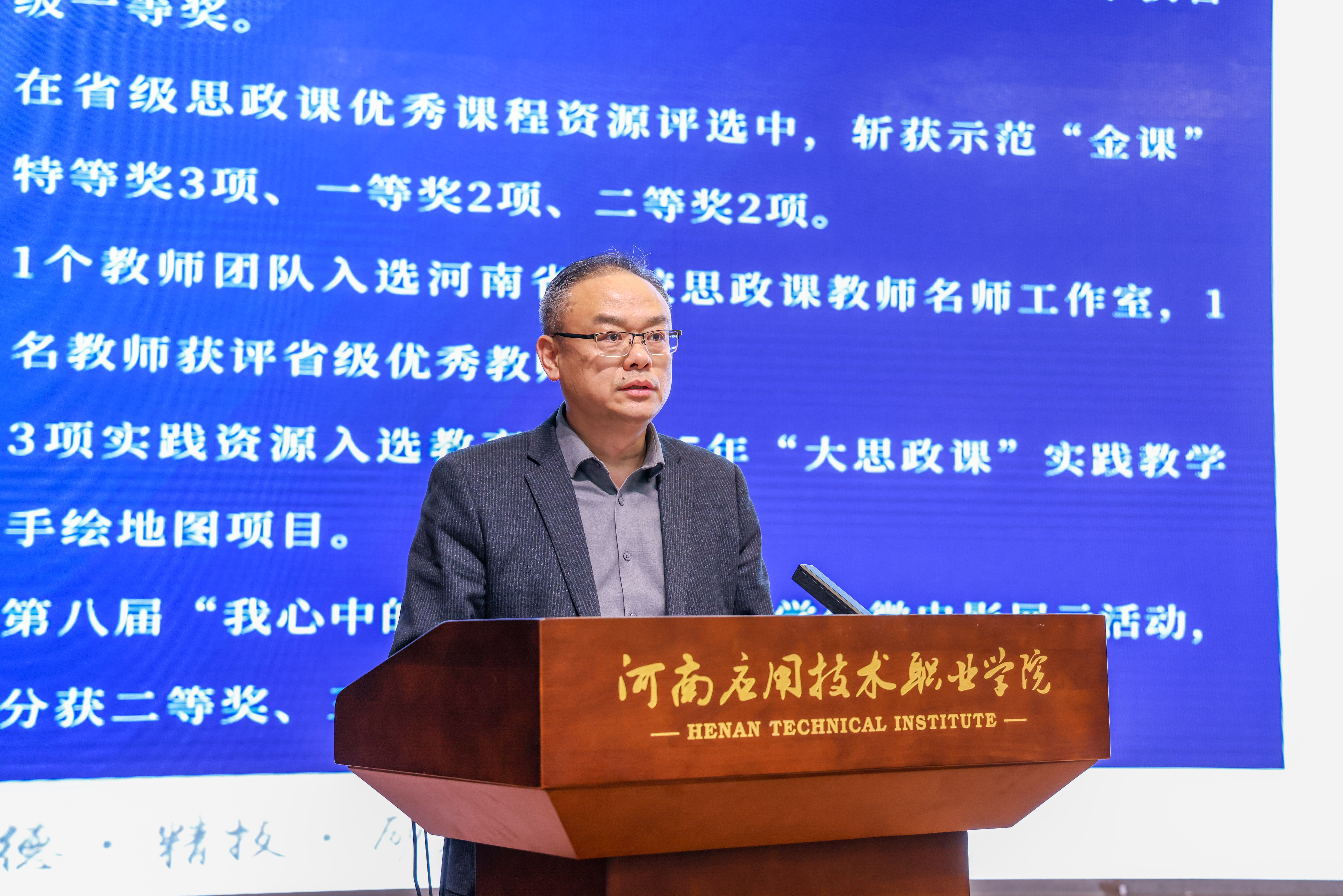 黄振中作题为《弦歌不辍育英才 惟实励新续华章 谱写学校人才培养工作新篇章》的教学工作报告,回顾和总结了学校2025年在专业建设、教学改革、教学能力提升等方面取得的突破性进展,分析和研判了当前教学工作中存在的机遇与挑战,并对2026年学校教学工作进行了系统规划与周密部署,为下一阶段工作统一了思想、提振了信心、凝聚了力量、奠定了基础。