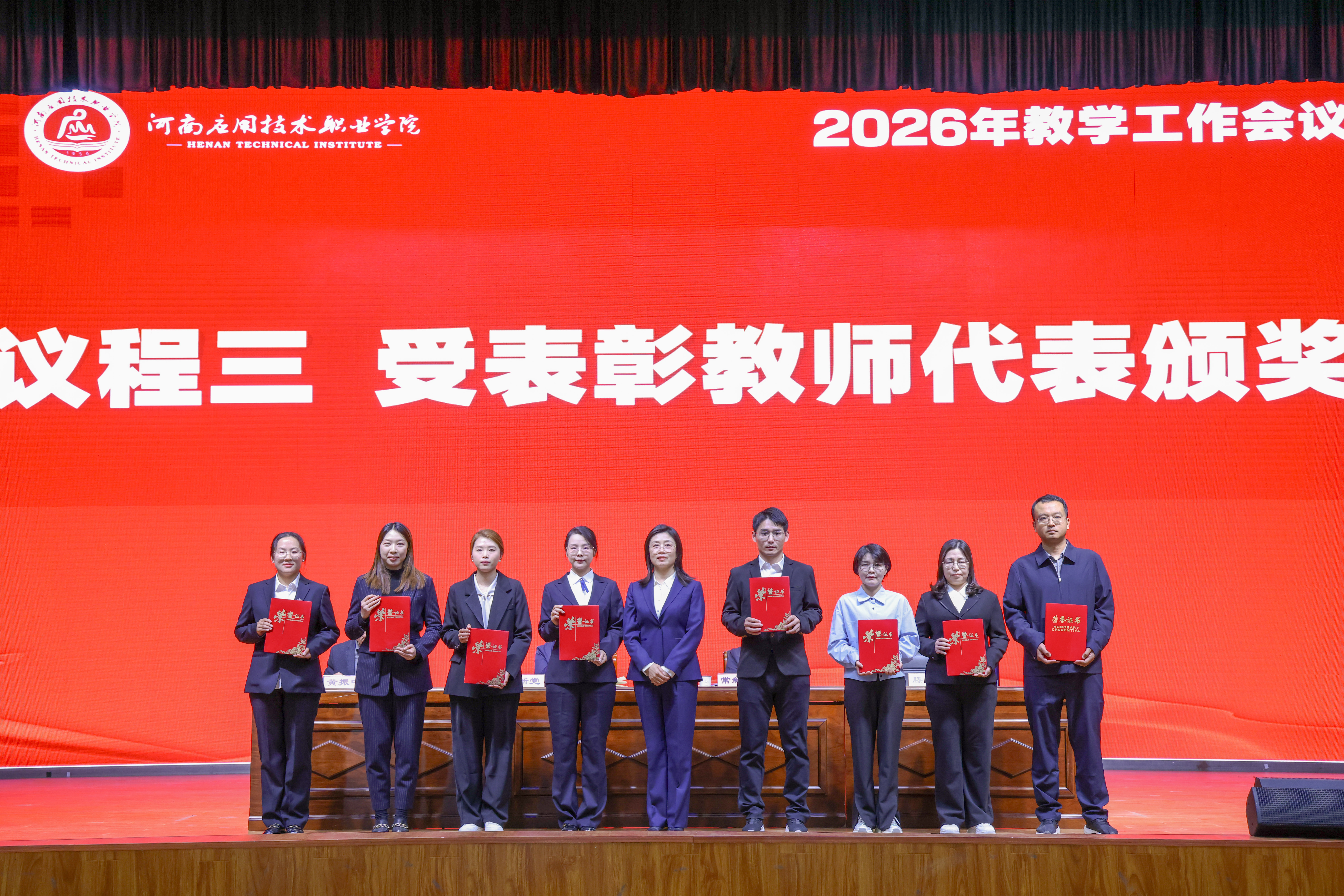 会上,滕文锐宣读了《关于表彰2025年教学成果获奖者的决定》和《关于表彰2025年省级以上各类技能竞赛获奖教师的决定》,校领导分别为2025年度获奖教师代表及教学成果项目教师代表颁发荣誉证书。